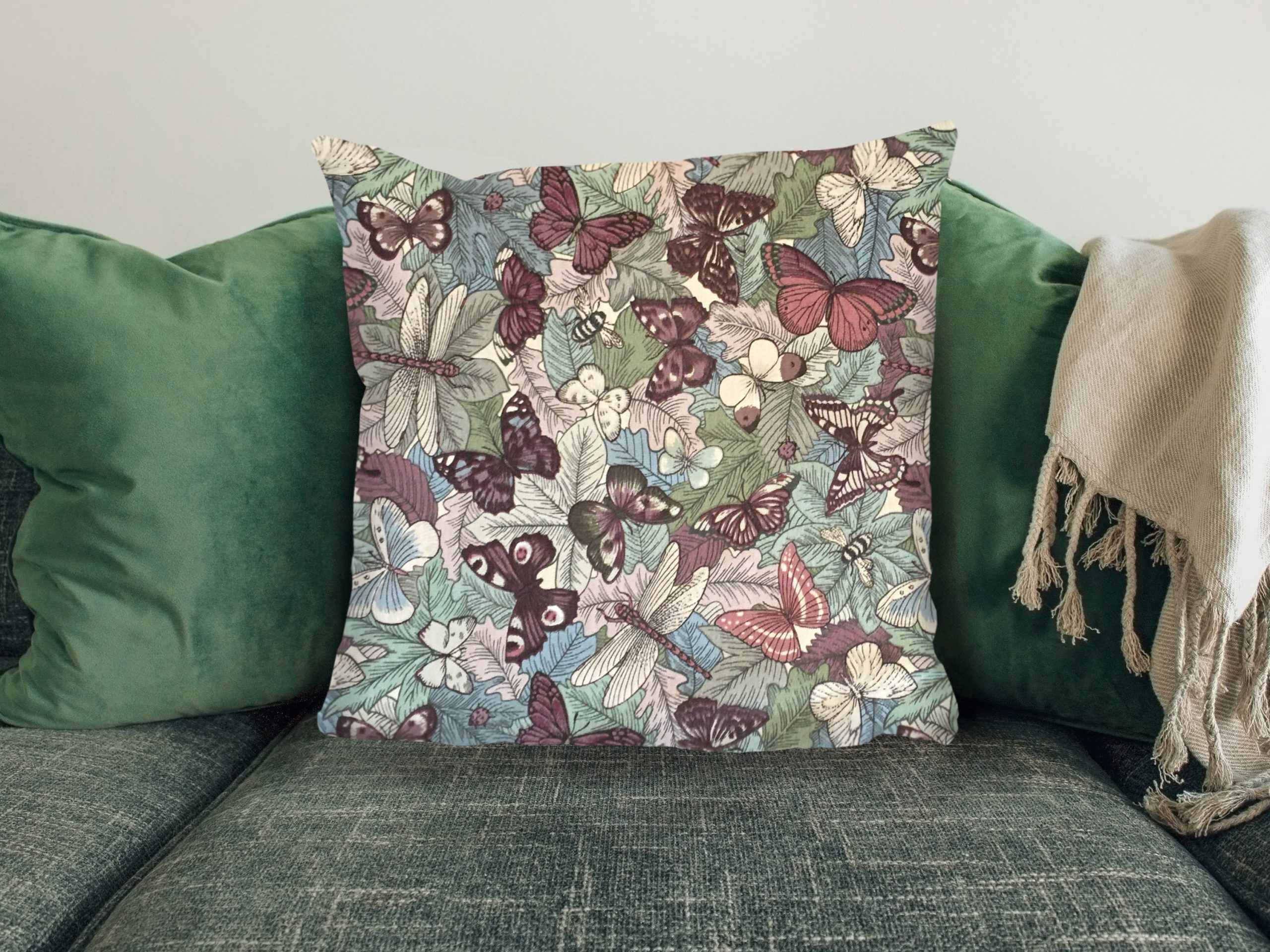 Our gorgeous Butterfly scatter cushion features a stunning patterned fabric of light toned butterflies, dragonflies, & bees flying above pastel toned leaves. Perfect for nature lovers everywhere & for bringing the great outdoors feel into your home.