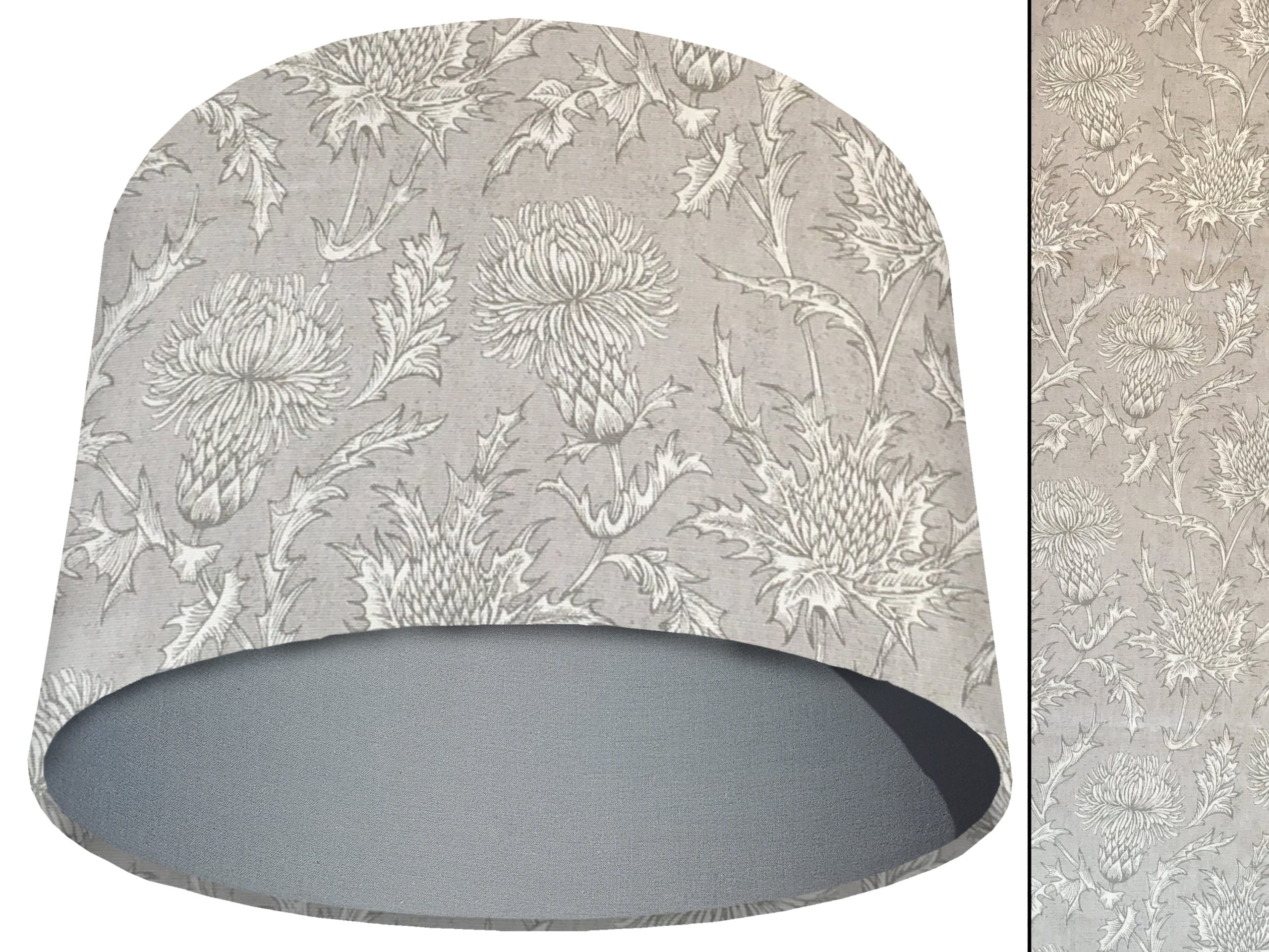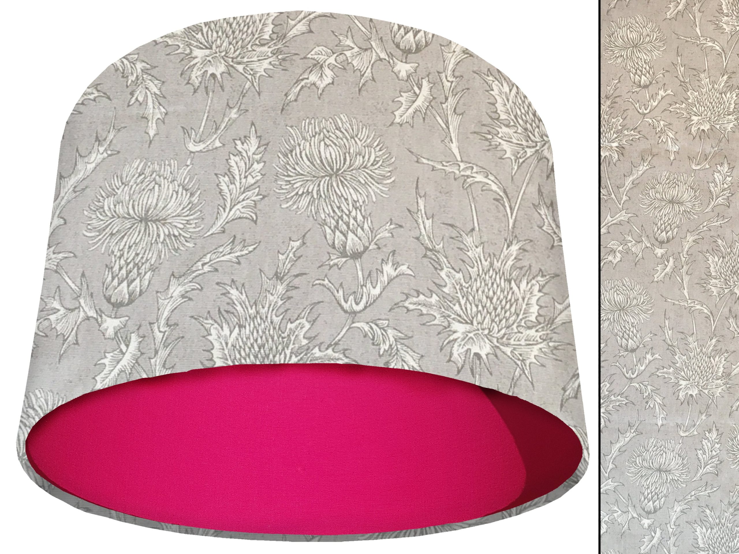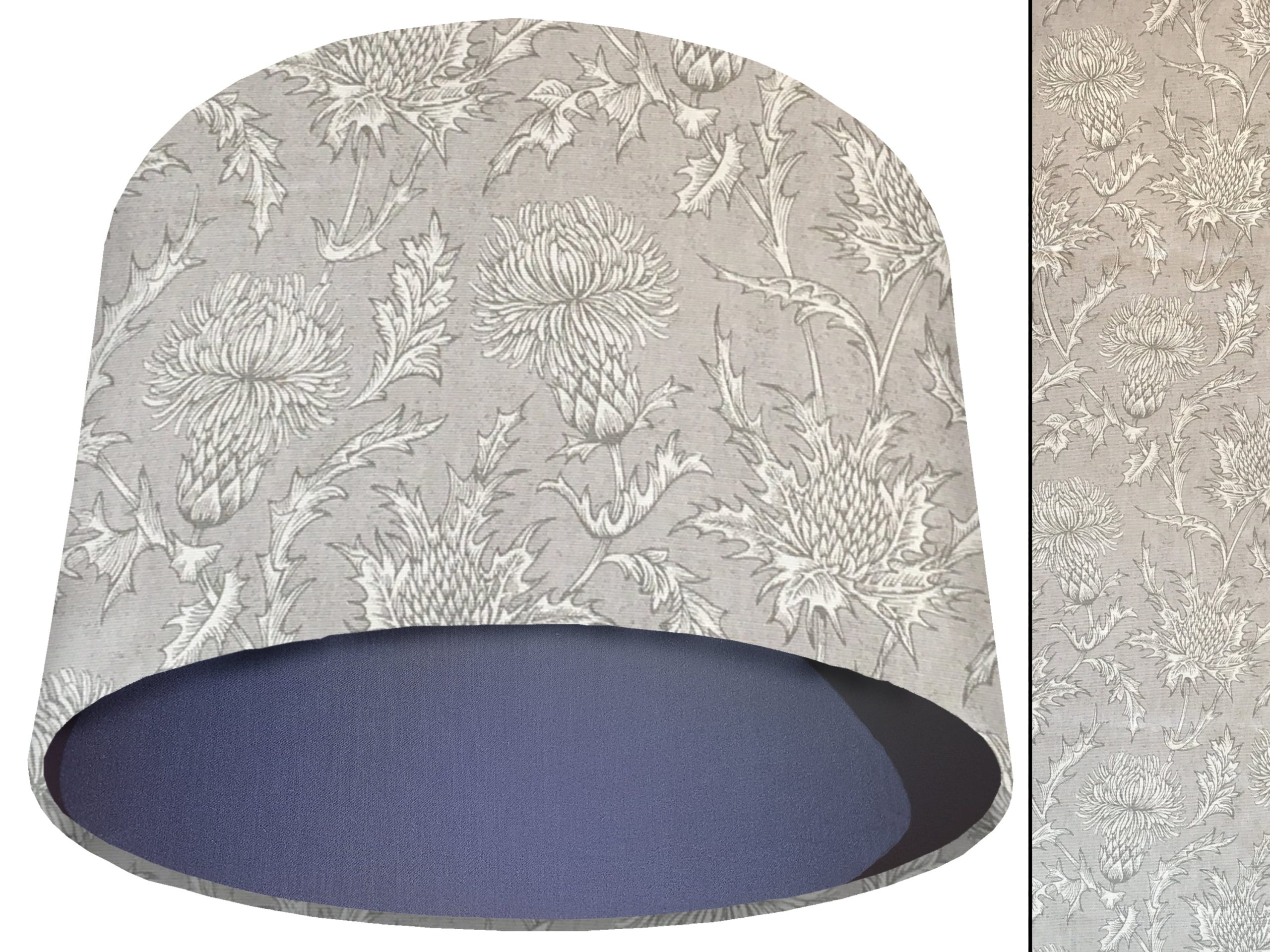 A gorgeous country home classic fabric makes this grey thistle light shade a stylish addition to your home interiors. Our light shades feature a beautiful patterned exterior design of white thistles with dark grey detailing, all on a light grey background. This can be paired with solid cotton colour lining of your choosing, ensuring this grey thistle light shade will add an extra burst of colour and style into your home.