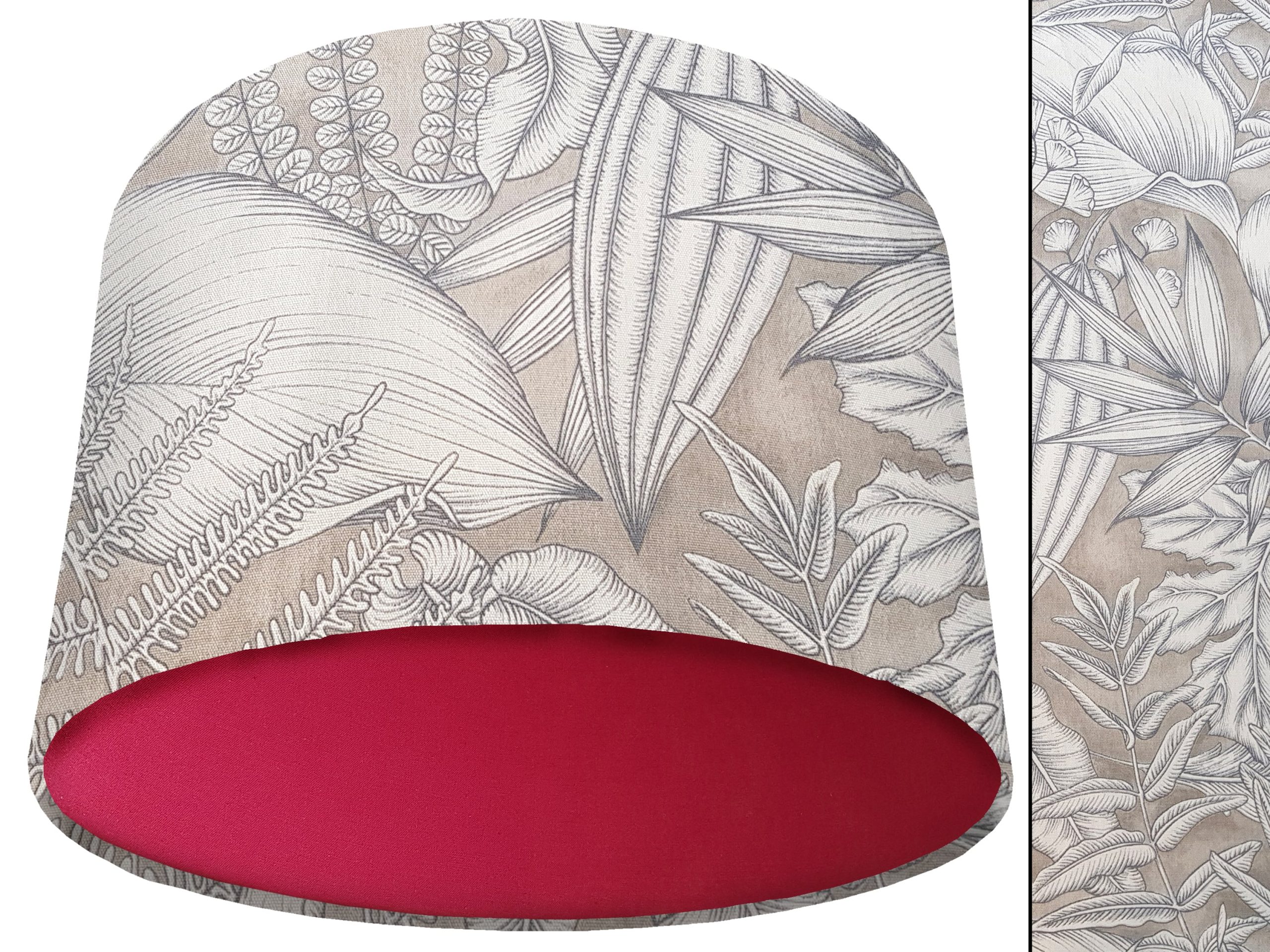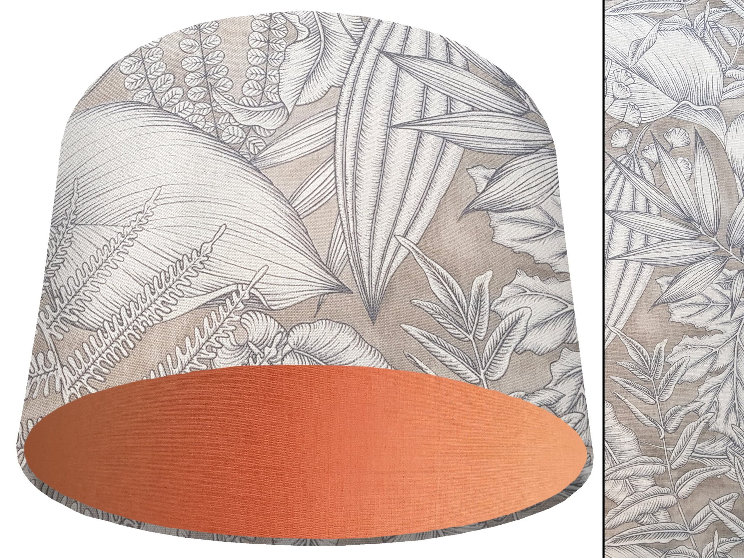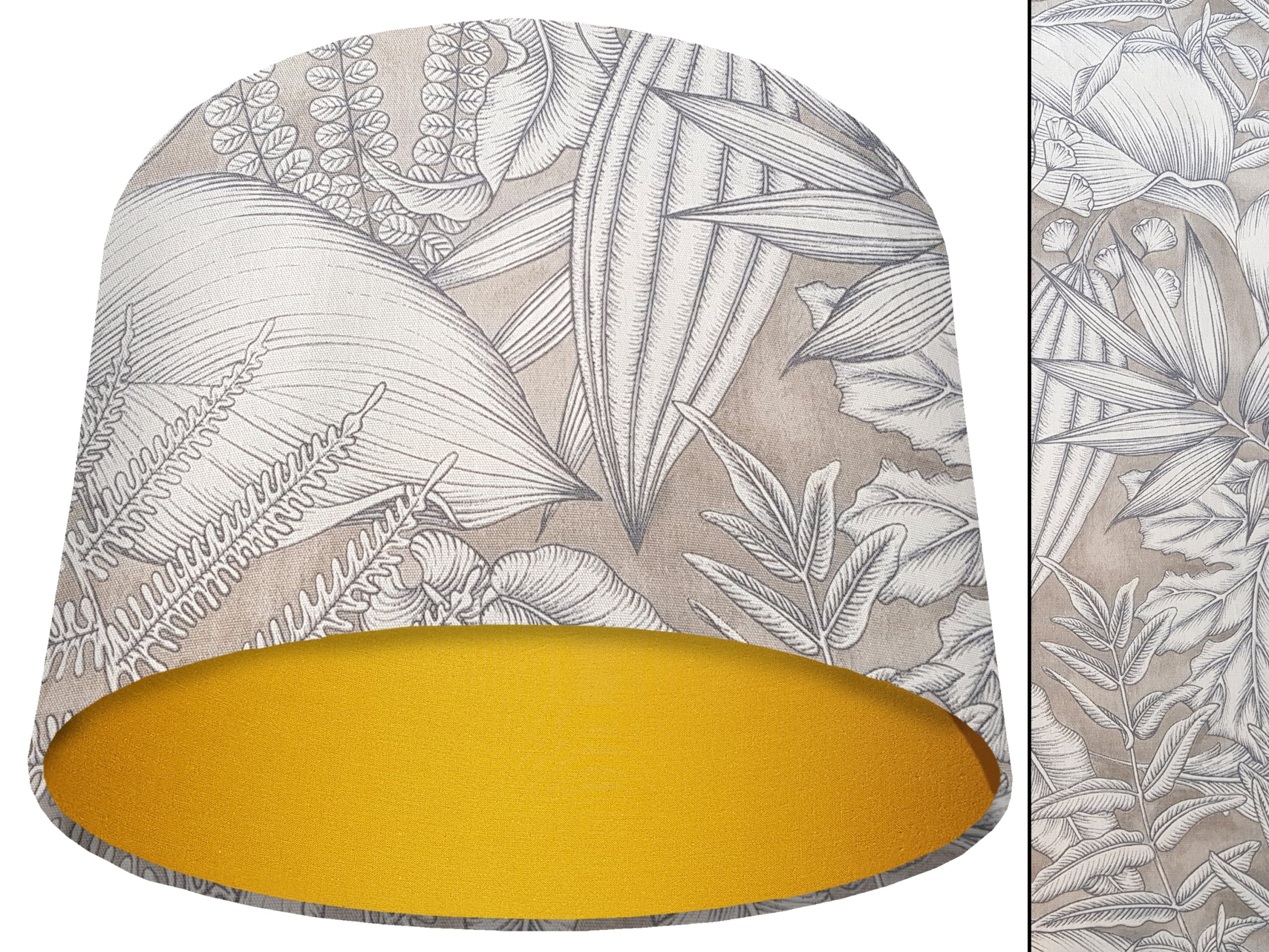 A stylish tropical leaf print fabric makes this grey tropical light shade a great addition to your modern home interiors. Our light shades feature a stunning patterned outer of white exotic leaves with dark grey detailing, all on a light grey background. You can pair this with a solid cotton colour lining of your choosing, to ensure this grey tropical light shade will complement any existing home décor, and add a splash of colour and style into any room.