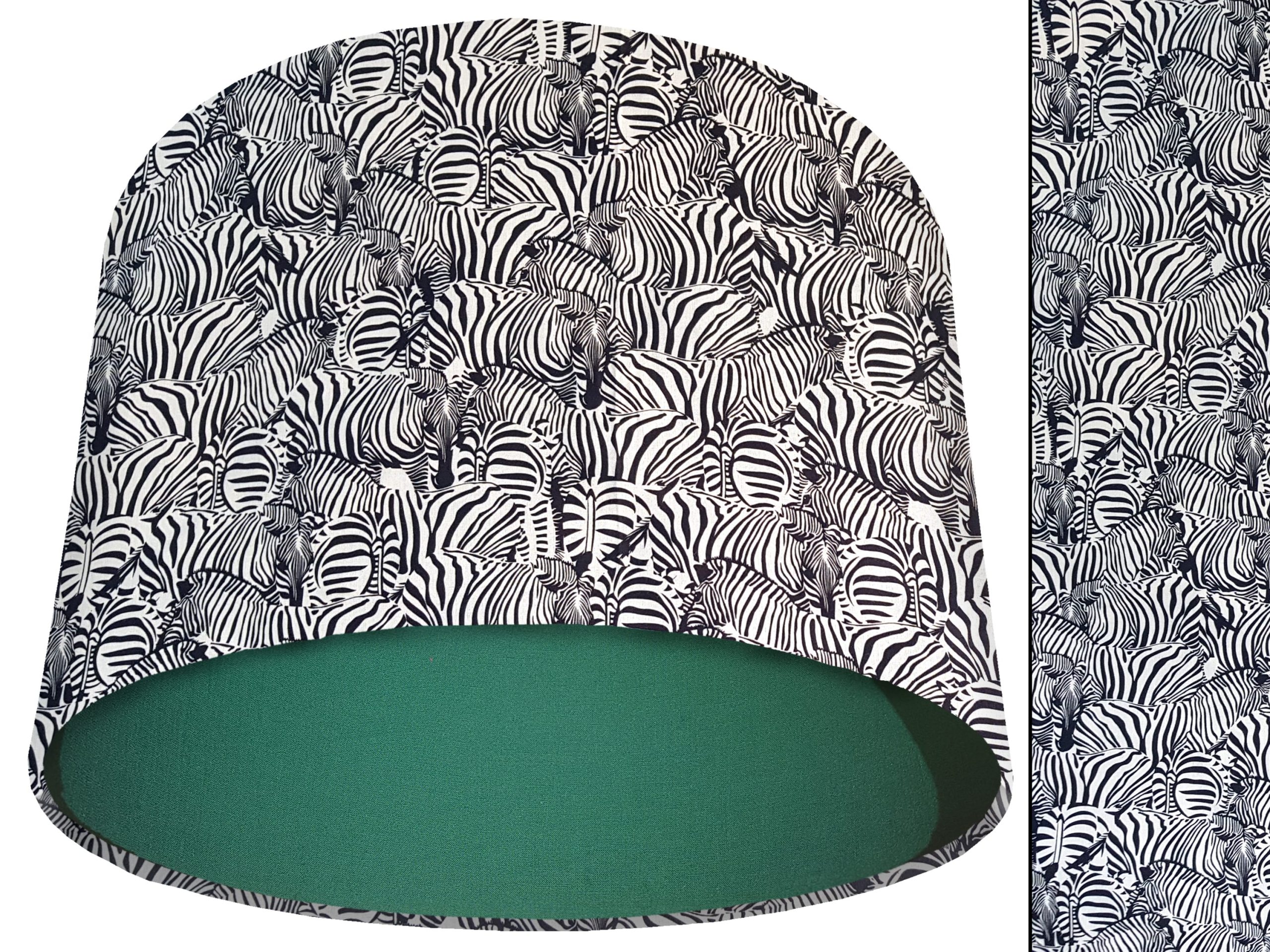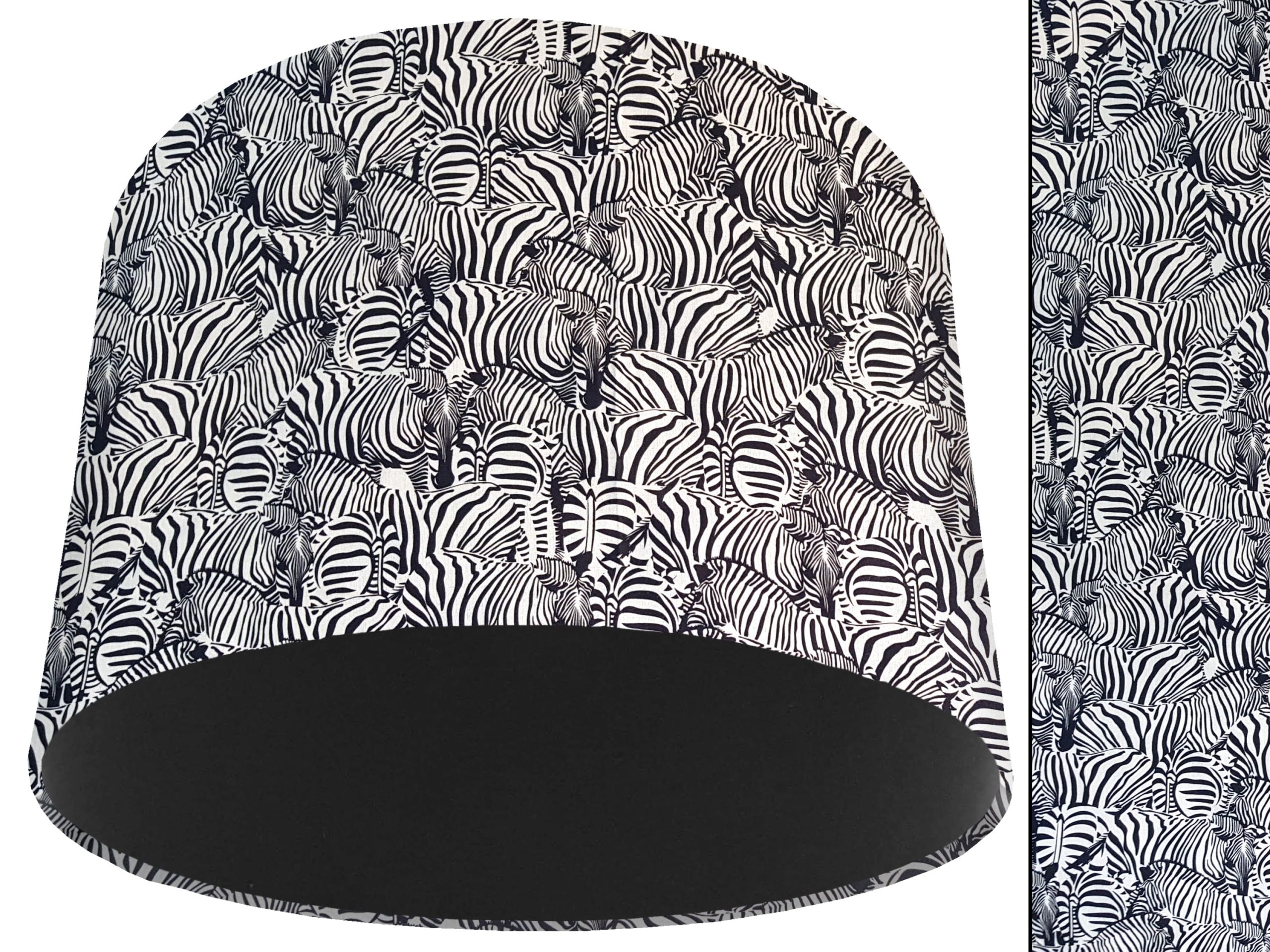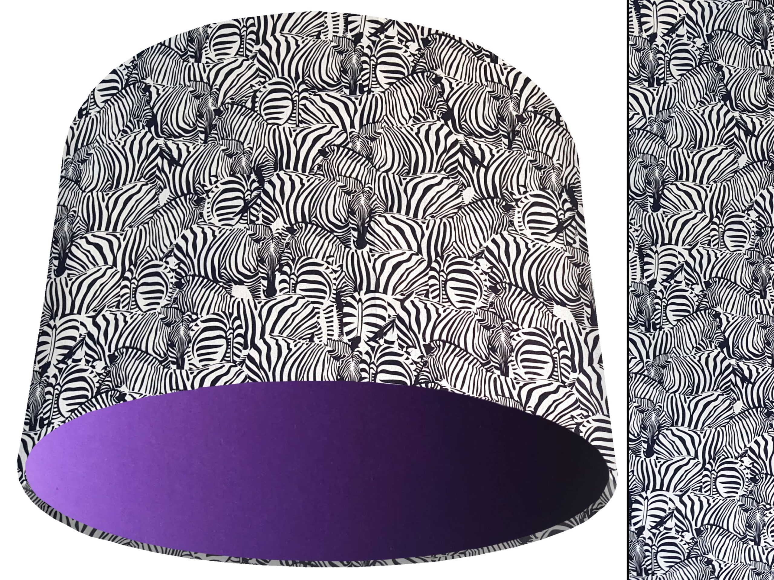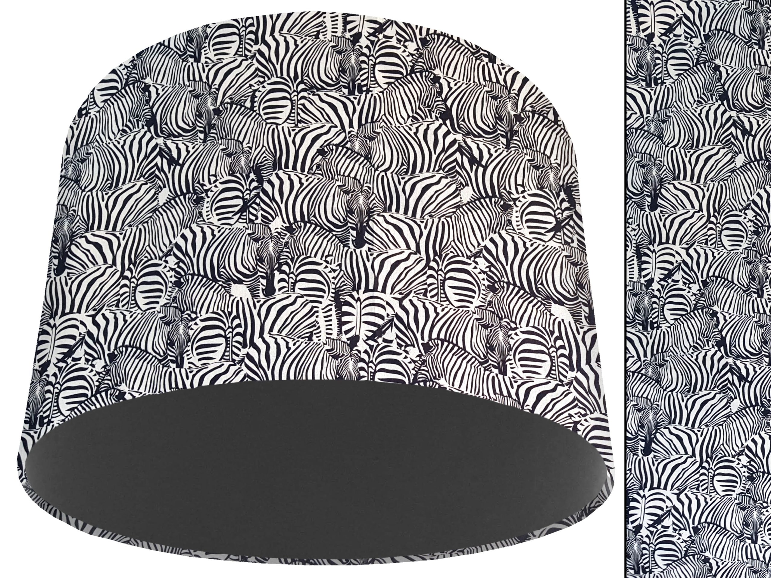 A striking animal print fabric makes this zebra print light shade a stylish addition to your bold home interiors. Our light shades feature an eye-catching outer of overlapping zebras, which almost creates a hypnotic effect. This can then be paired with a solid cotton colour lining of your choosing, adding a splash of colour to this zebra print light shade.