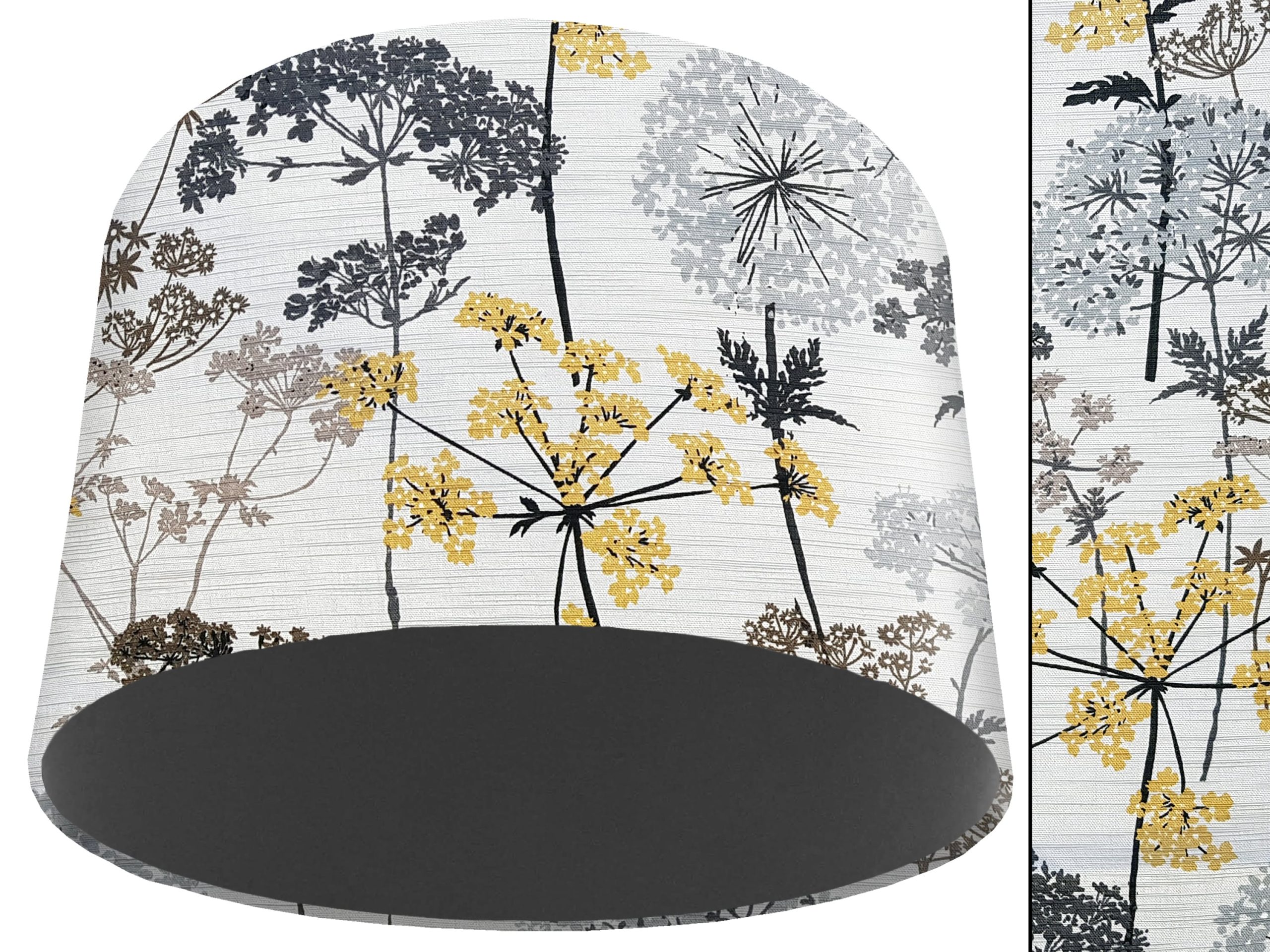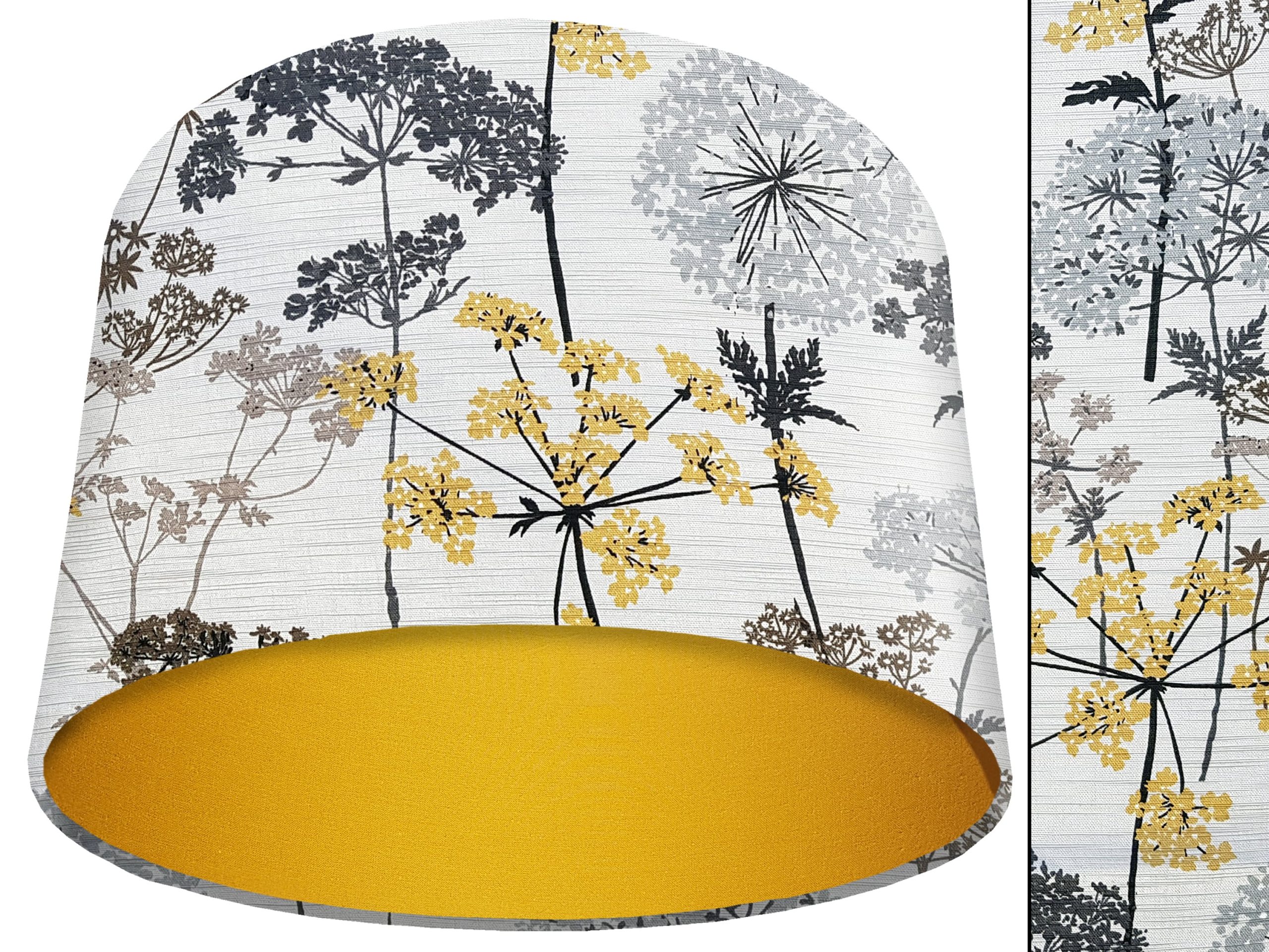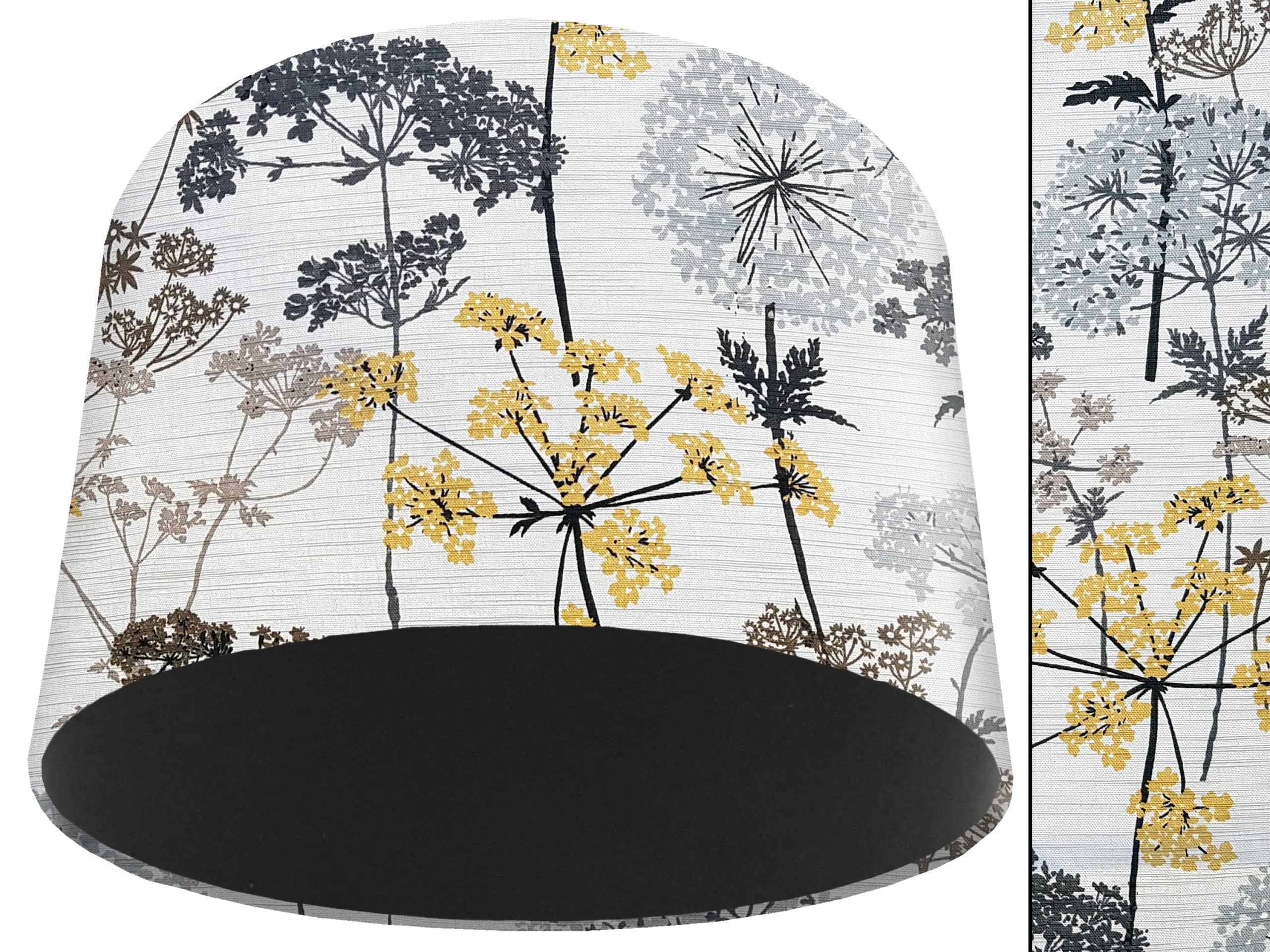 A classic country inspired fabric makes this cow parsley light shade a great addition to your country home interiors. Our light shades feature a patterned exterior featuring cow parsley heads in light & dark grey, and gold, on a pale silver grey background, simple yet stylish. This can be paired a with solid cotton colour lining of your choosing to create the ideal light shade for your home, and ensures this cow parsley light shade will become a stylish focal point in any room.