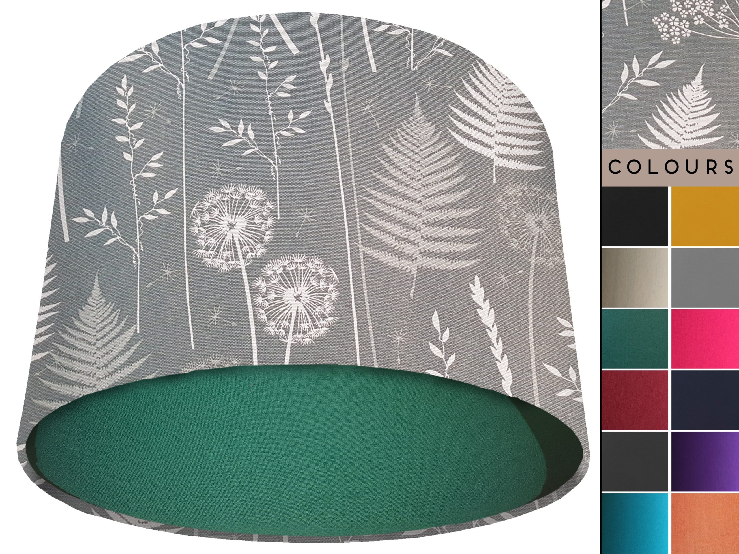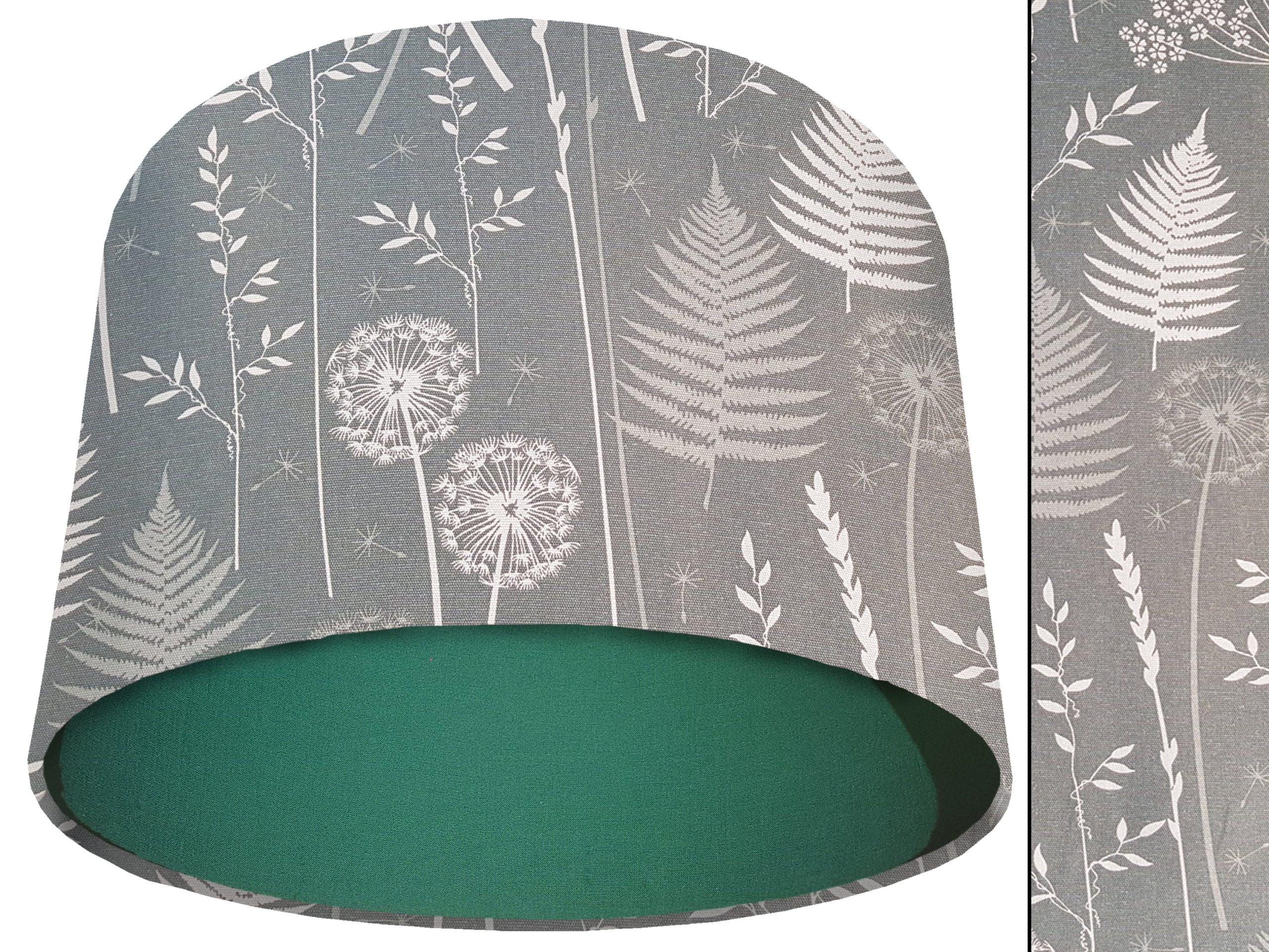 A beautiful country style fabric makes this dark moss light shade a stylish addition to your country home interiors. Our light shades feature a gorgeous patterned outer of a white & grey seed heads & leaves on a dark moss background. This can be paired with solid cotton colour lining of your choosing, so you can create the ideal dark moss light shade for your home.