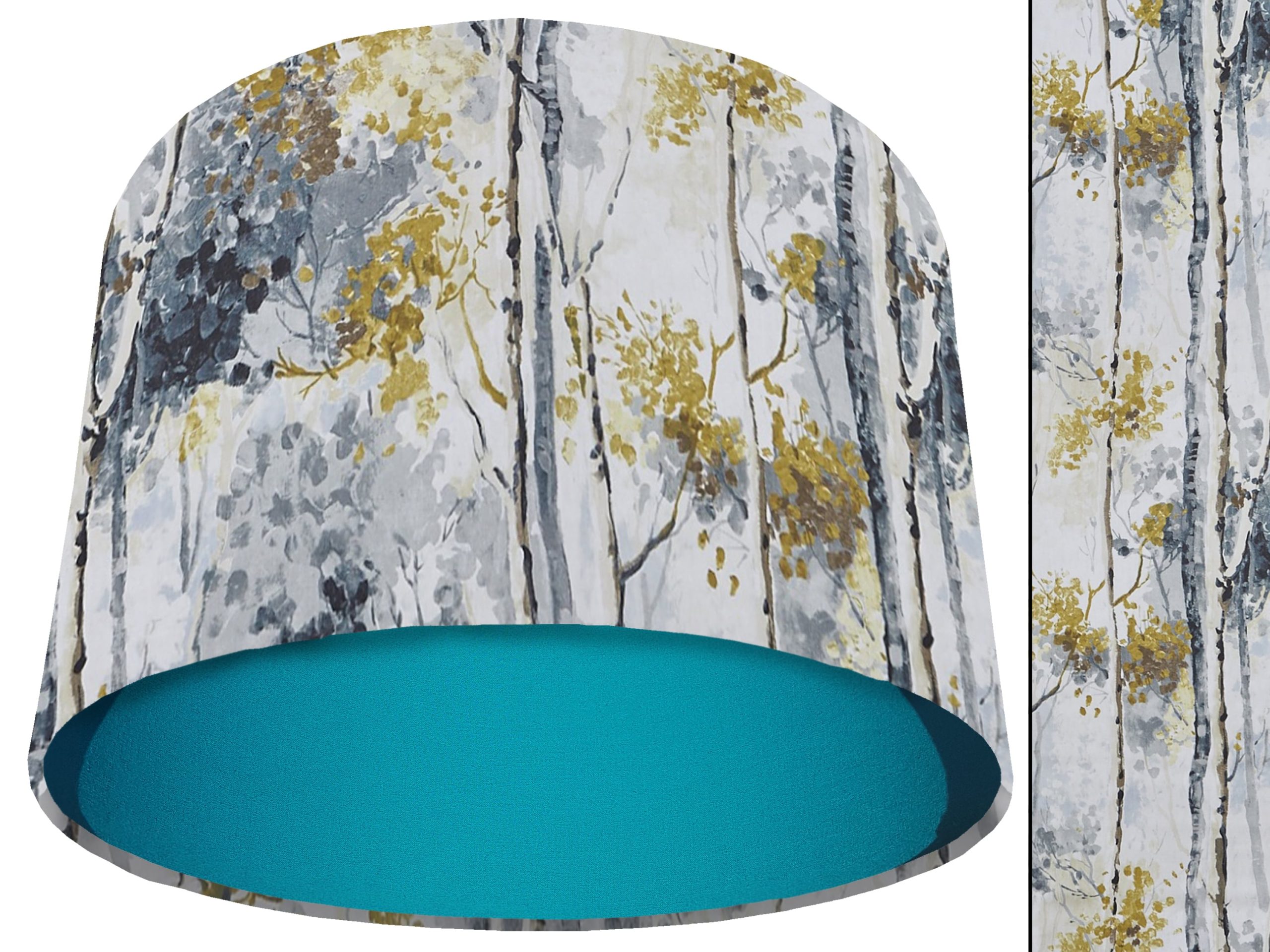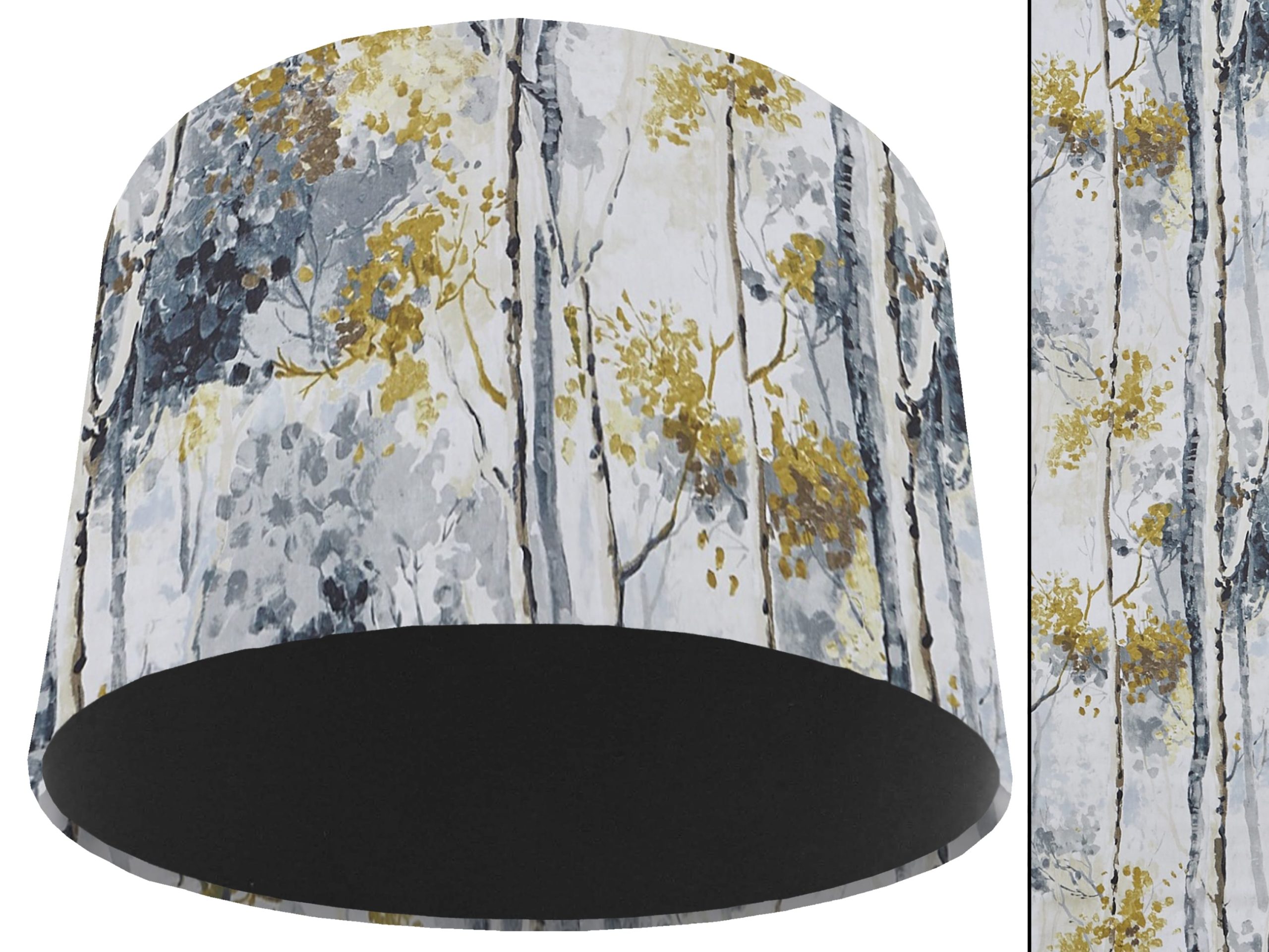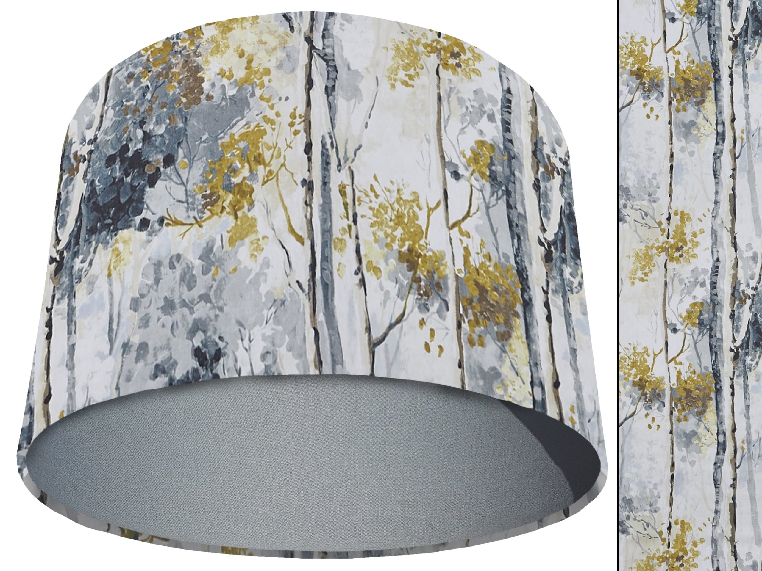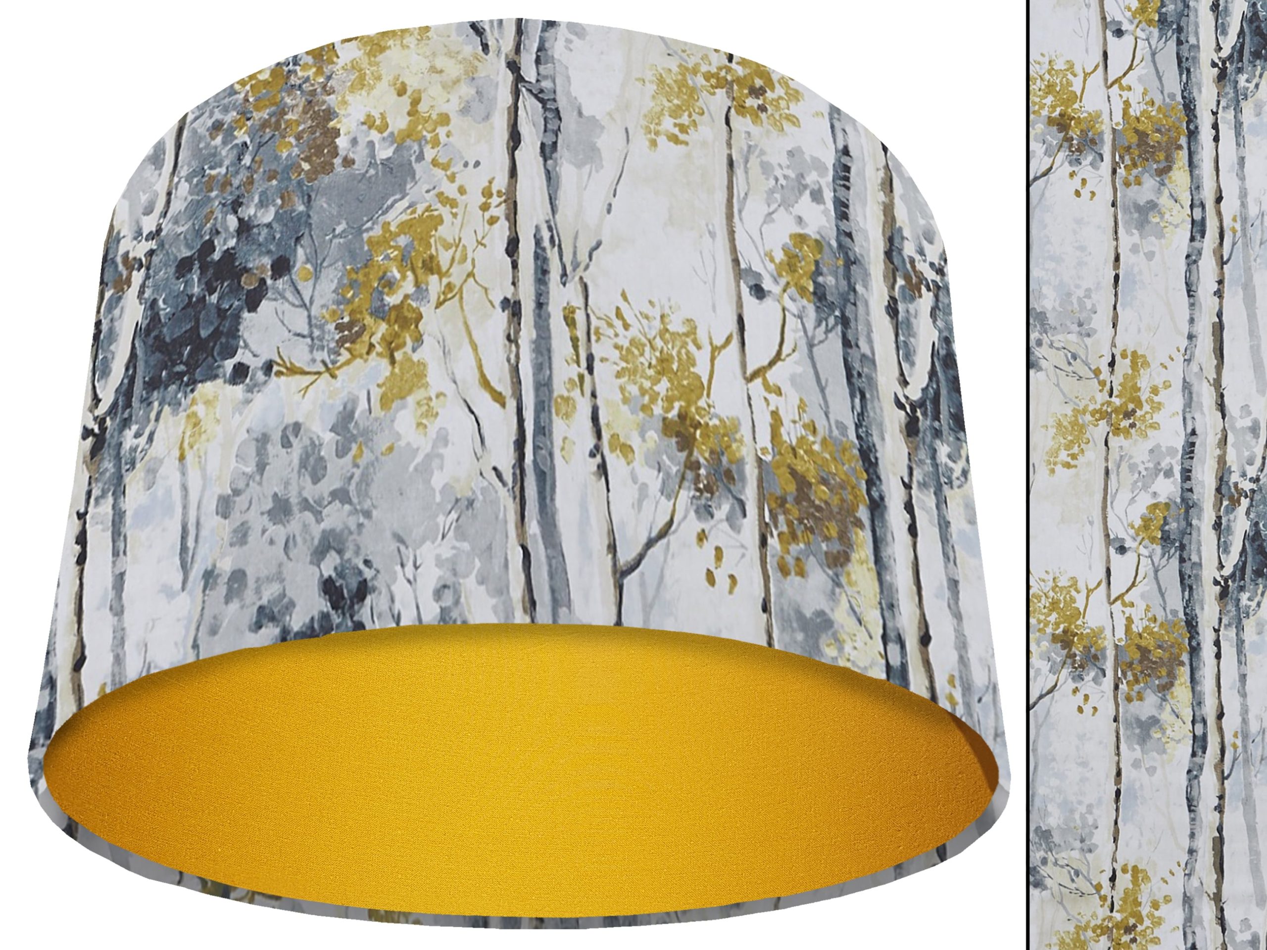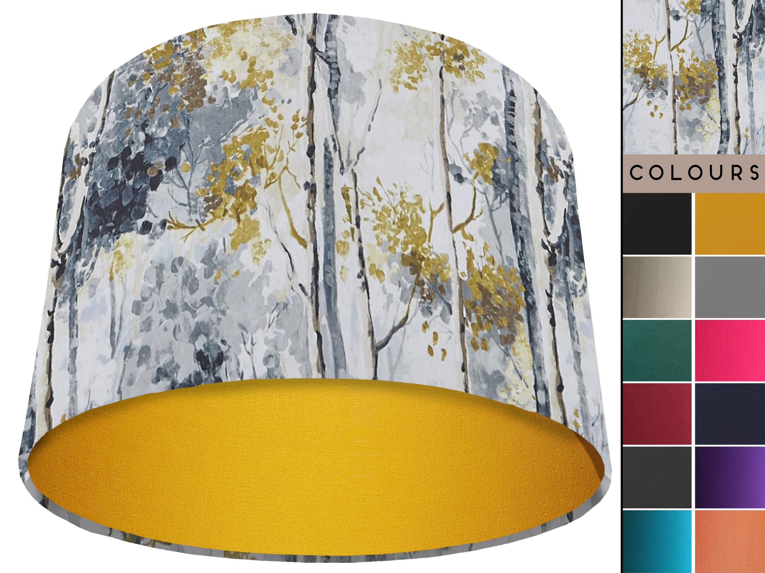 A stylish modern Scandinavian design makes this silver birch light shade a stunning addition to your contemporary home interior. Our light shades feature a beautiful patterned exterior of a stylised forest in silver, grey, and black tones with golden yellow leaves throughout adding a soft pop of colour to the design. This can be paired with solid cotton colour lining of your choosing, ensuring this silver birch light shade will complement any existing home décor as well as add an extra burst of colour and style.