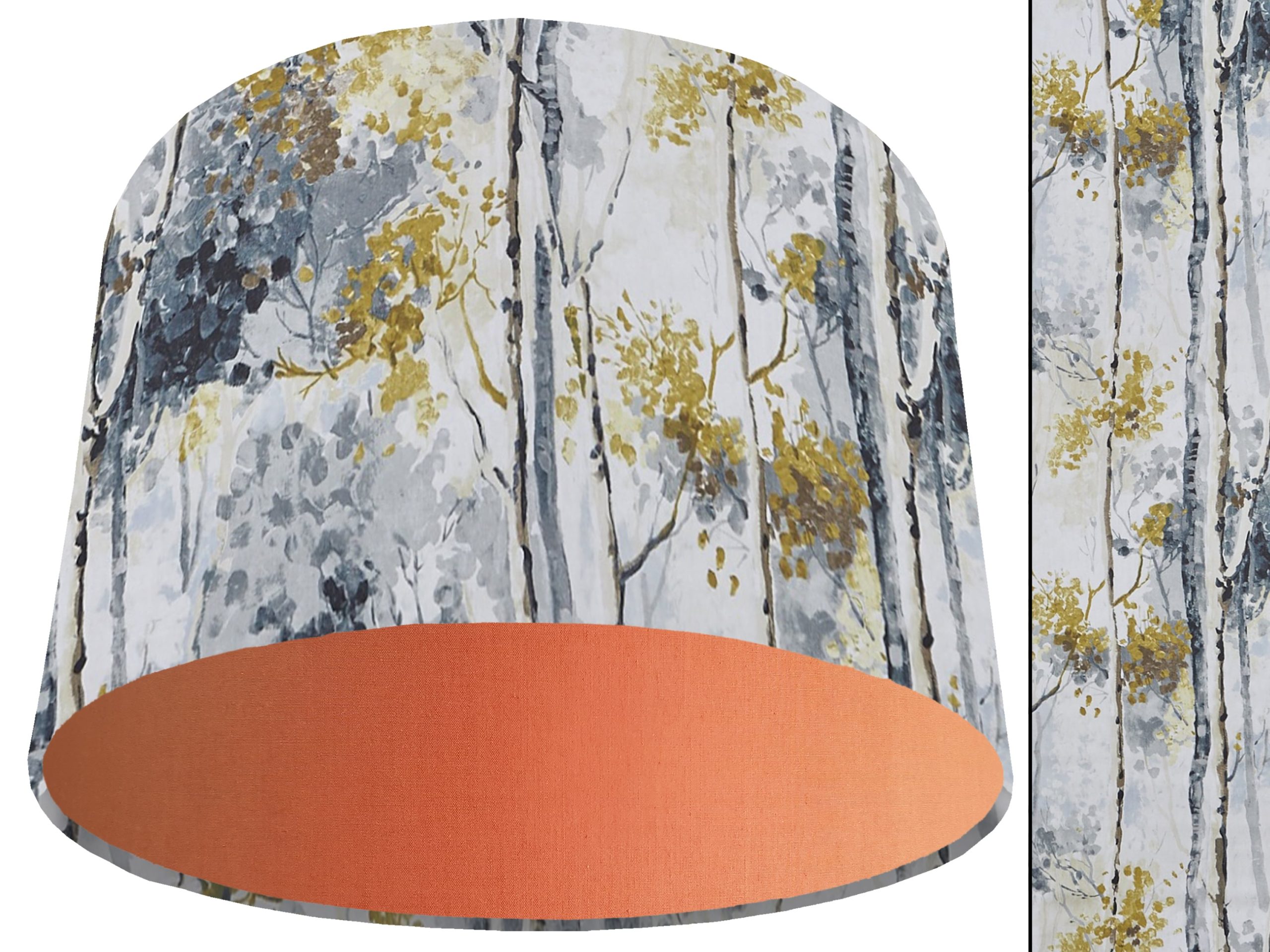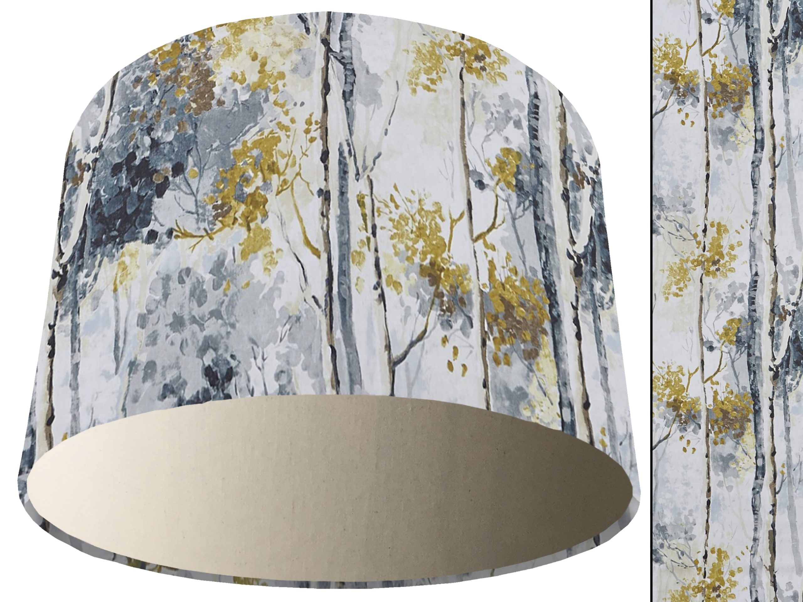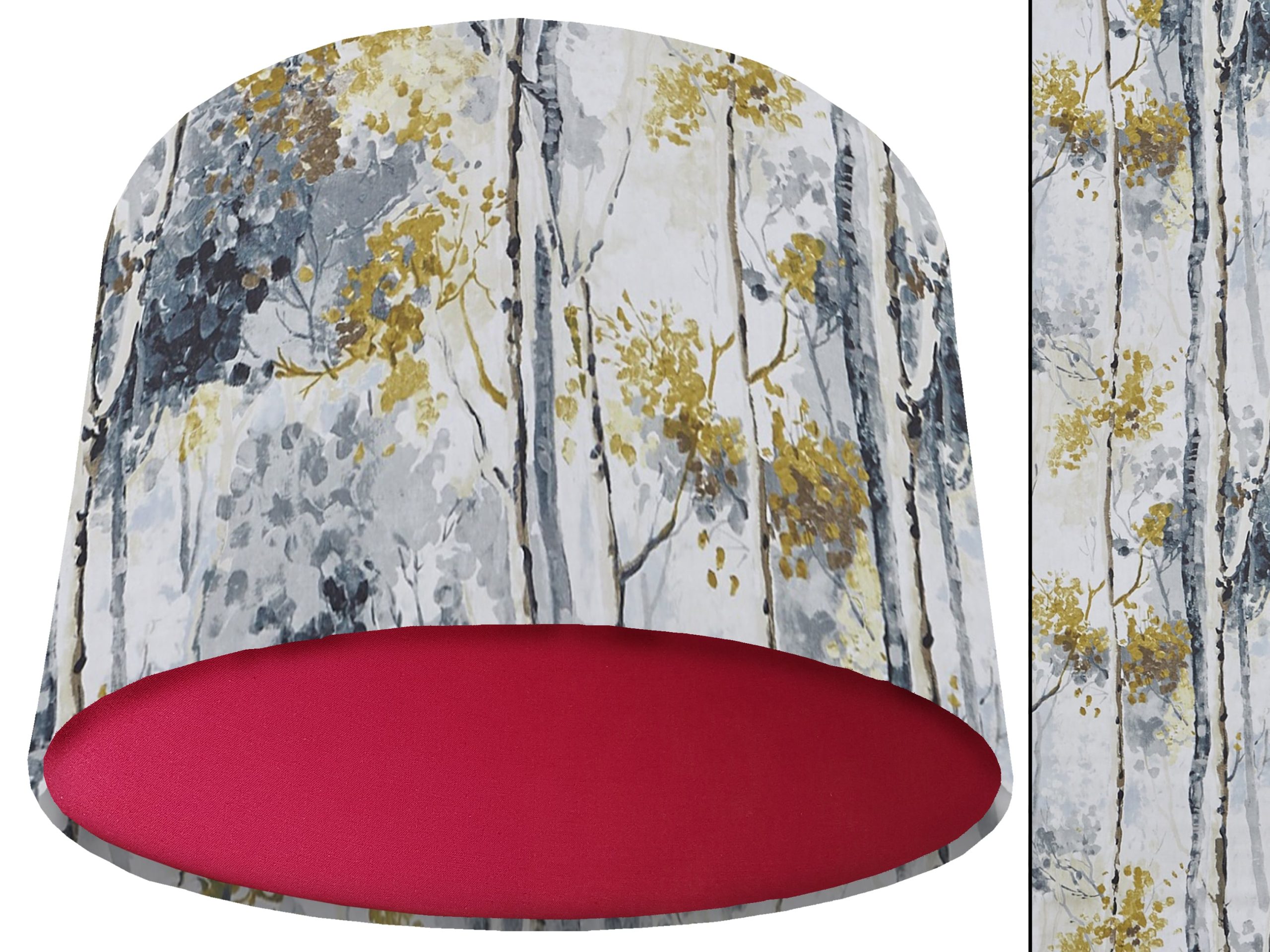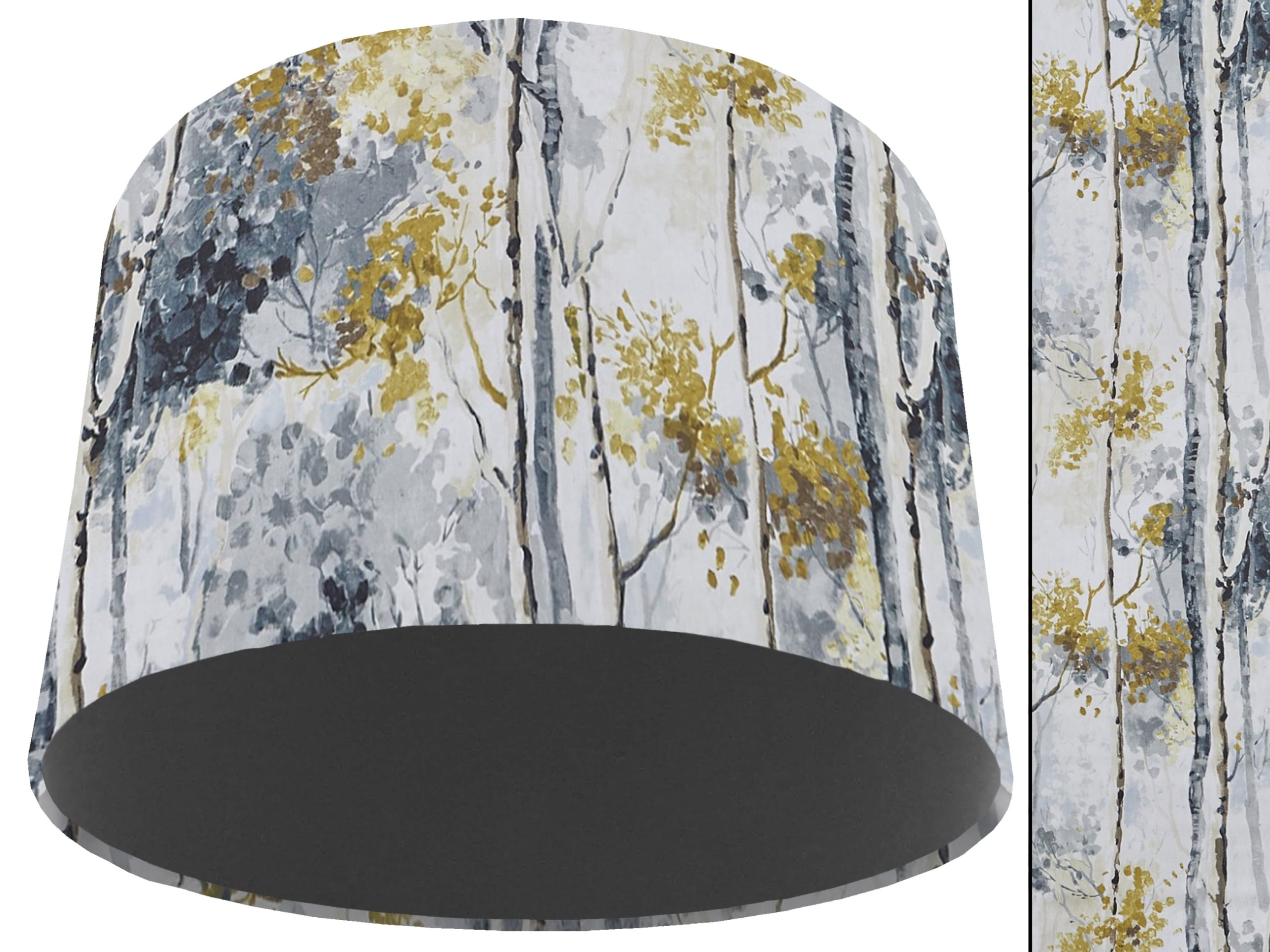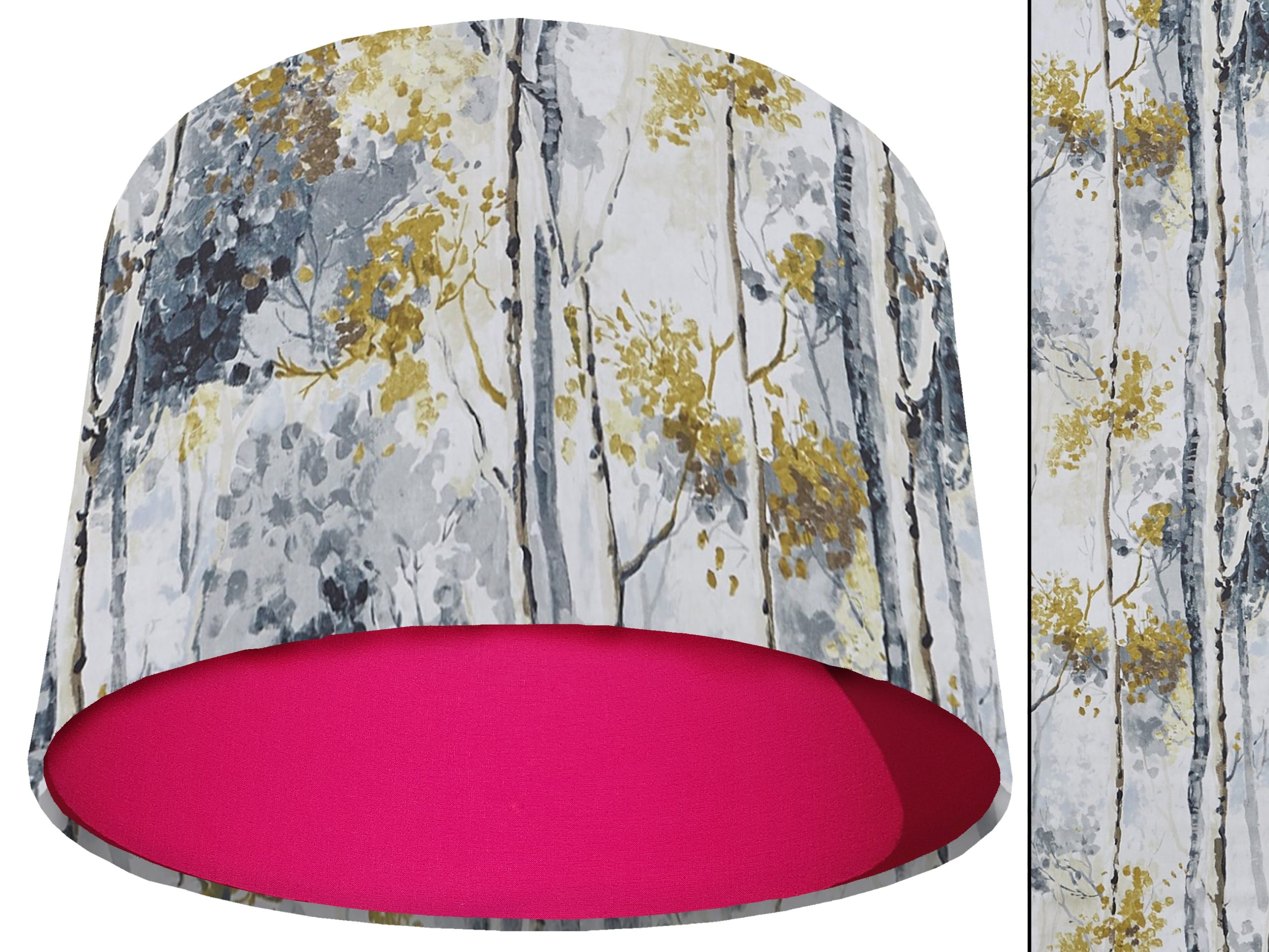 A stylish modern Scandinavian design makes this silver birch light shade a stunning addition to your contemporary home interior. Our light shades feature a beautiful patterned exterior of a stylised forest in silver, grey, and black tones with golden yellow leaves throughout adding a soft pop of colour to the design. This can be paired with solid cotton colour lining of your choosing, ensuring this silver birch light shade will complement any existing home décor as well as add an extra burst of colour and style.