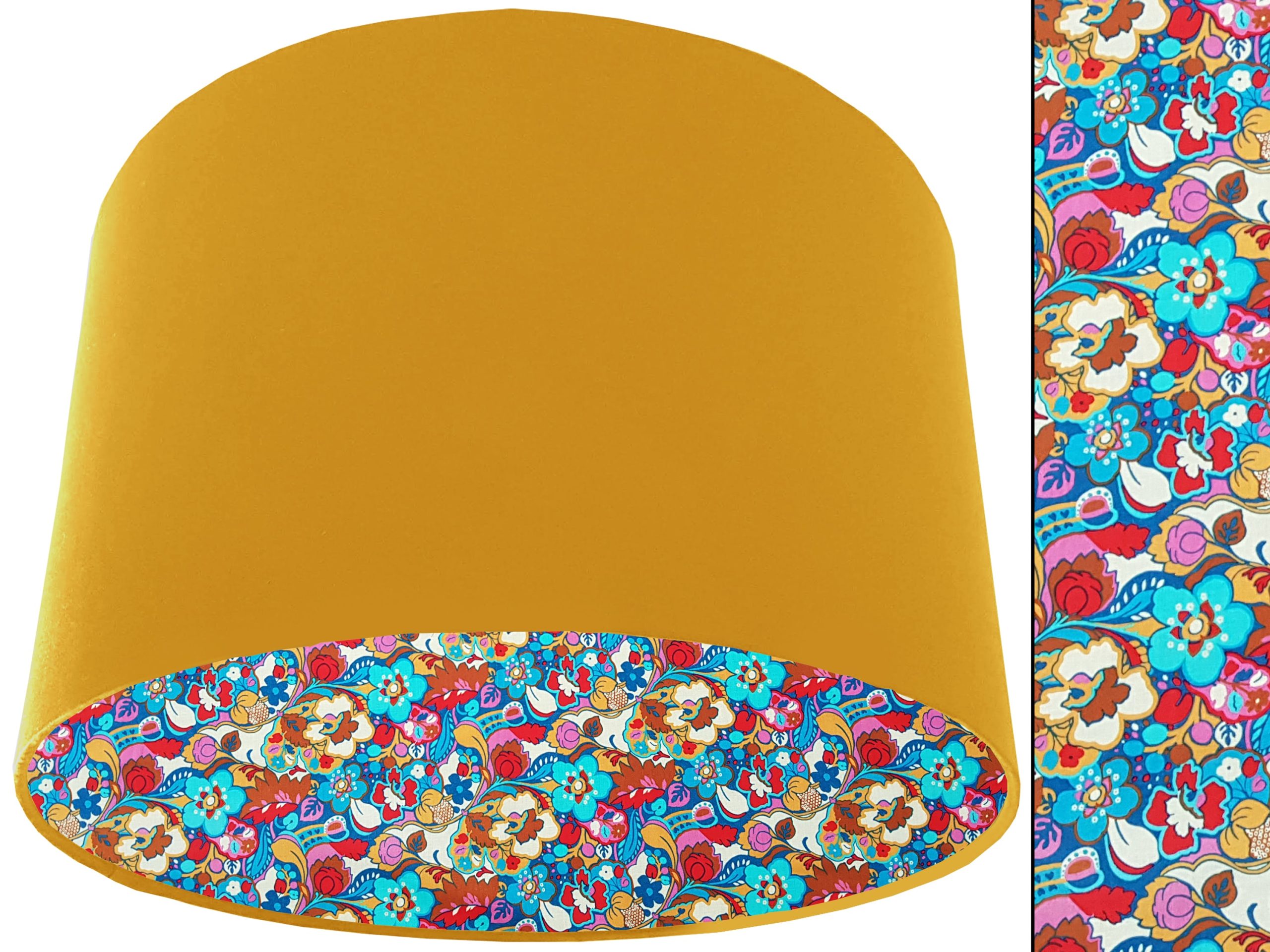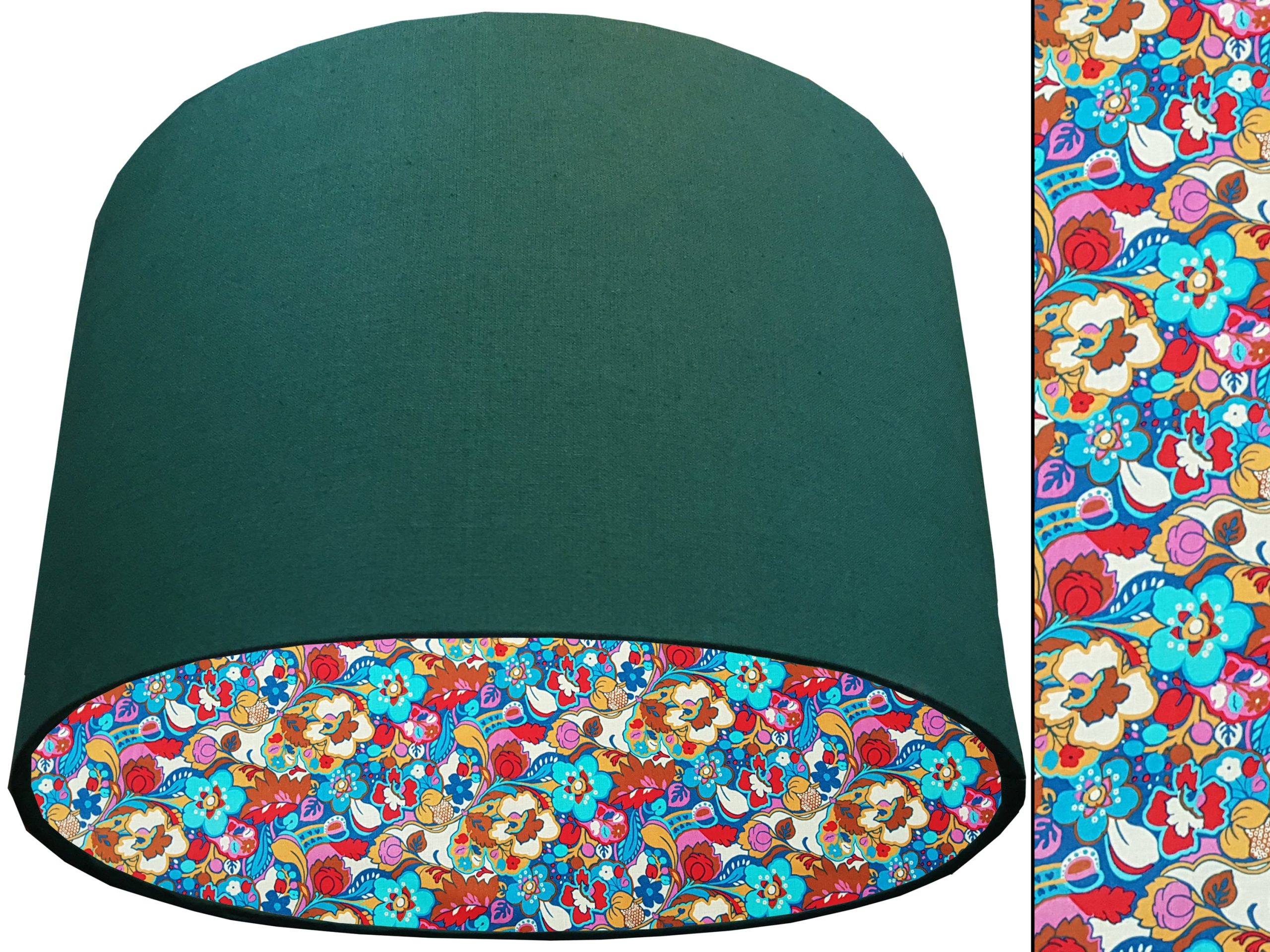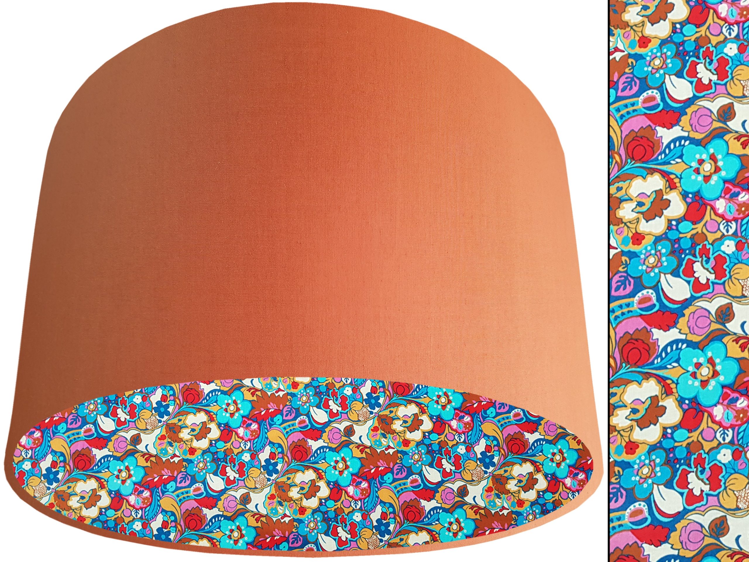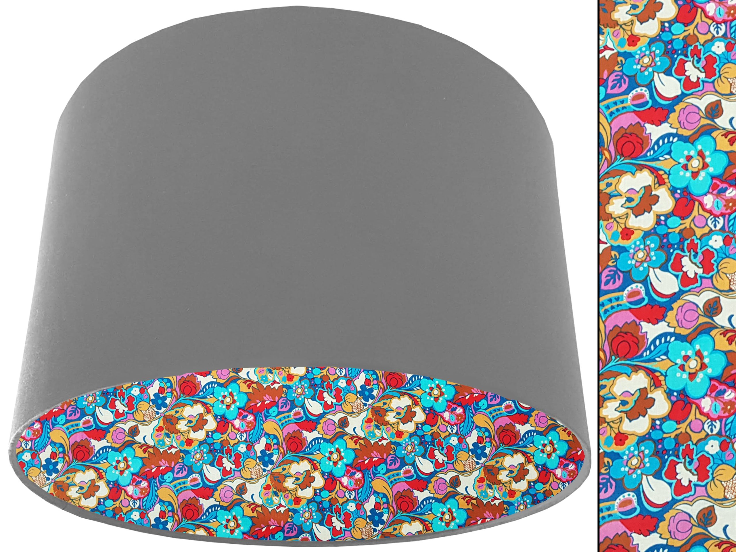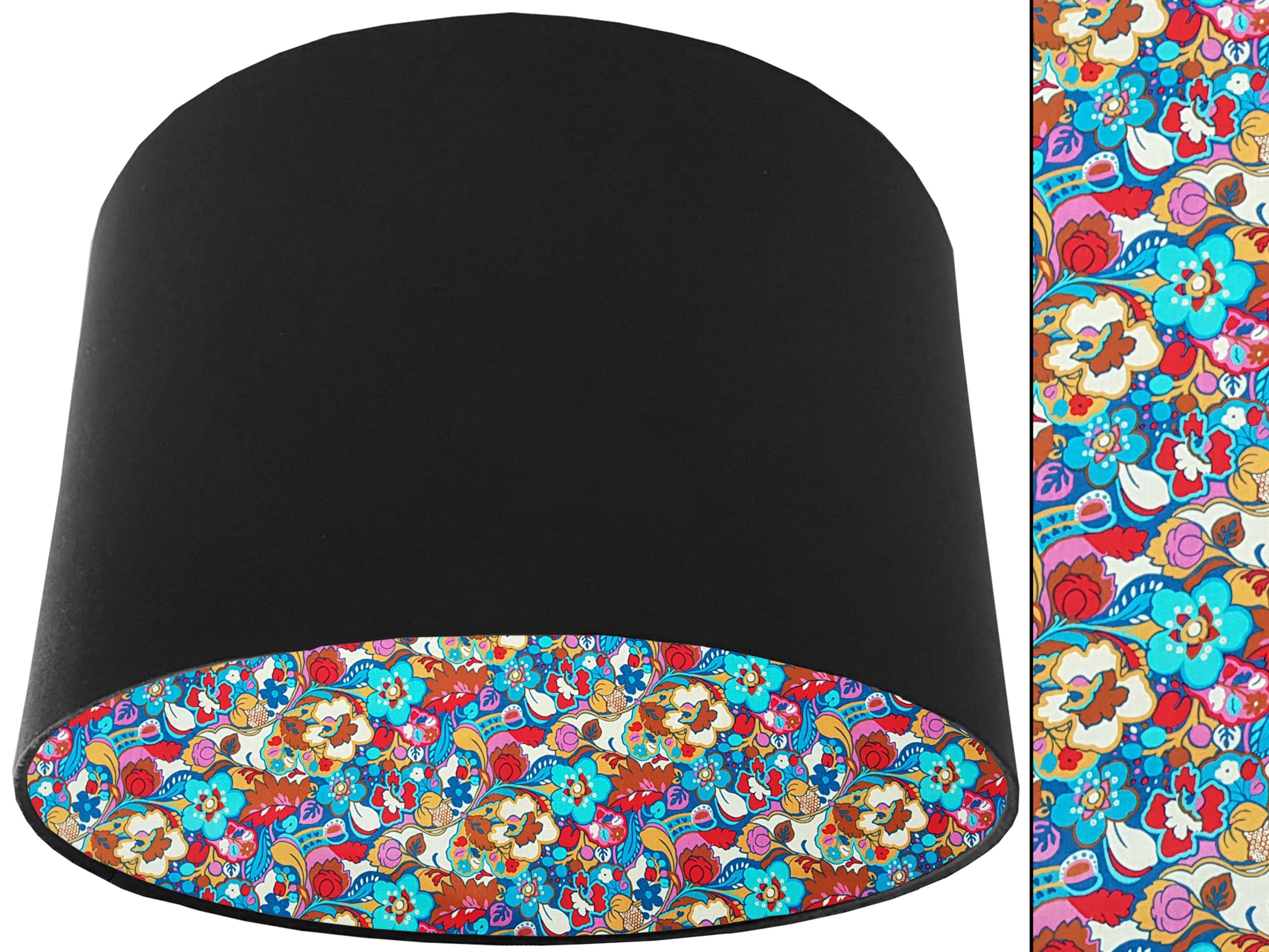 A bold Liberty Art fabric makes this floral bloom lampshade a vibrant addition to any modern home interior. Our lampshades are stylishly lined with a design by Liberty Art featuring stylised flowers & leaves in striking blue, teal, red and other tones. When paired with an outer cotton colour of your choosing, this floral bloom lampshade will add a burst of eye-catching colour into any room, creating a bold statement.