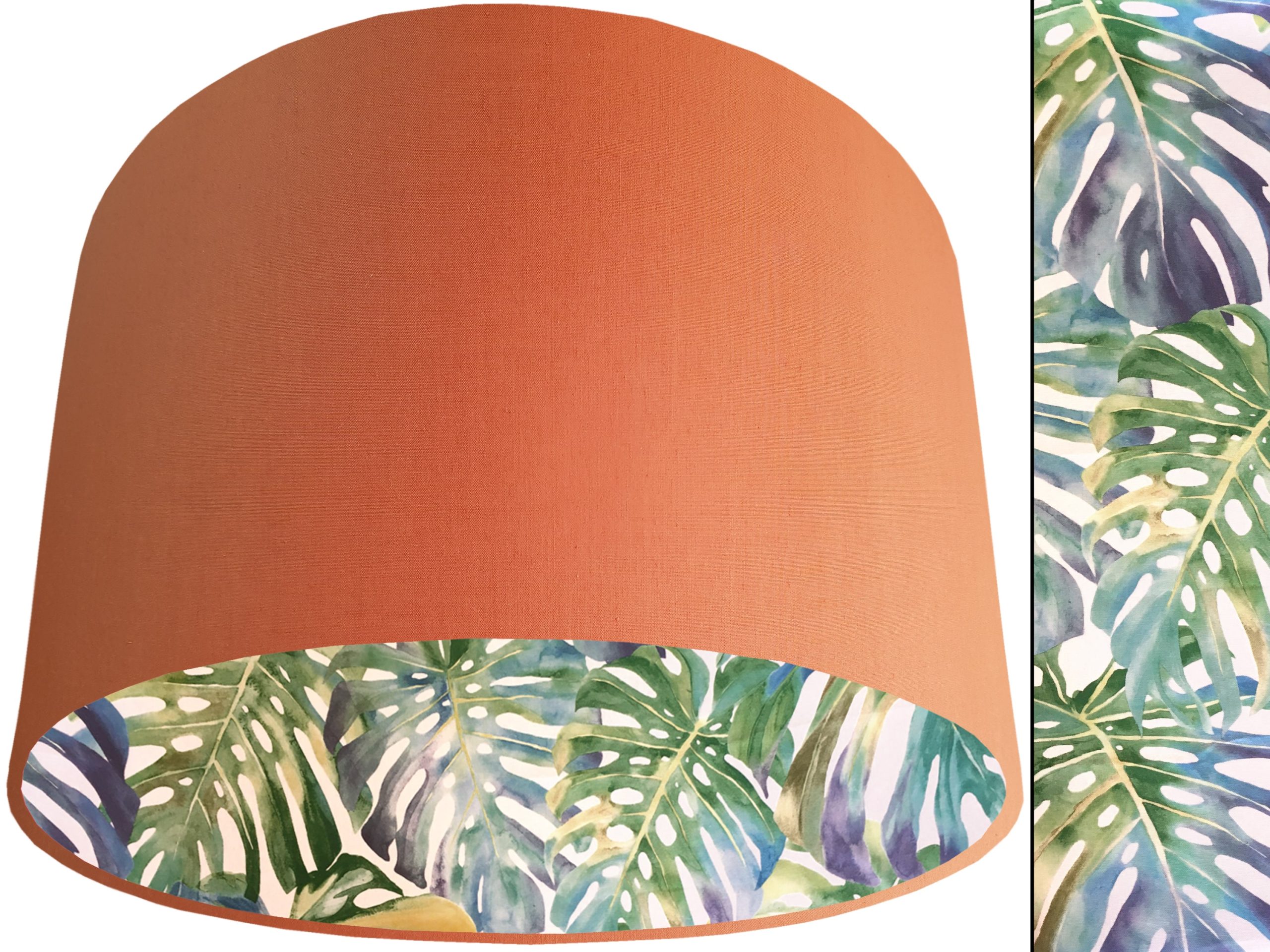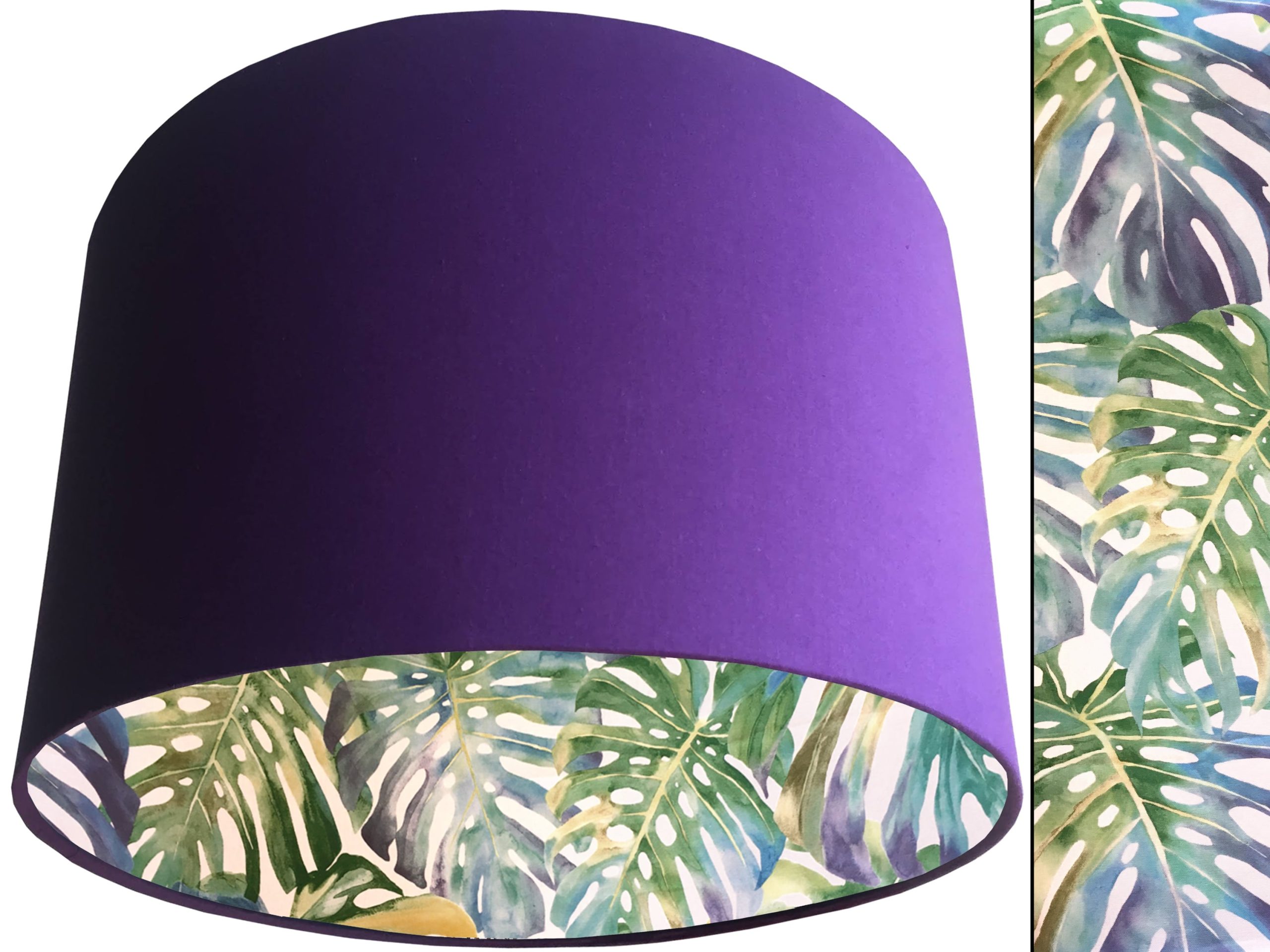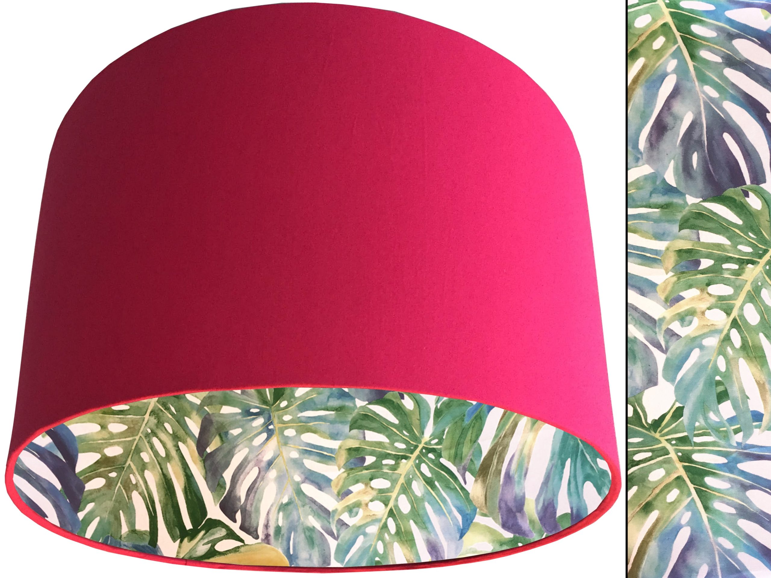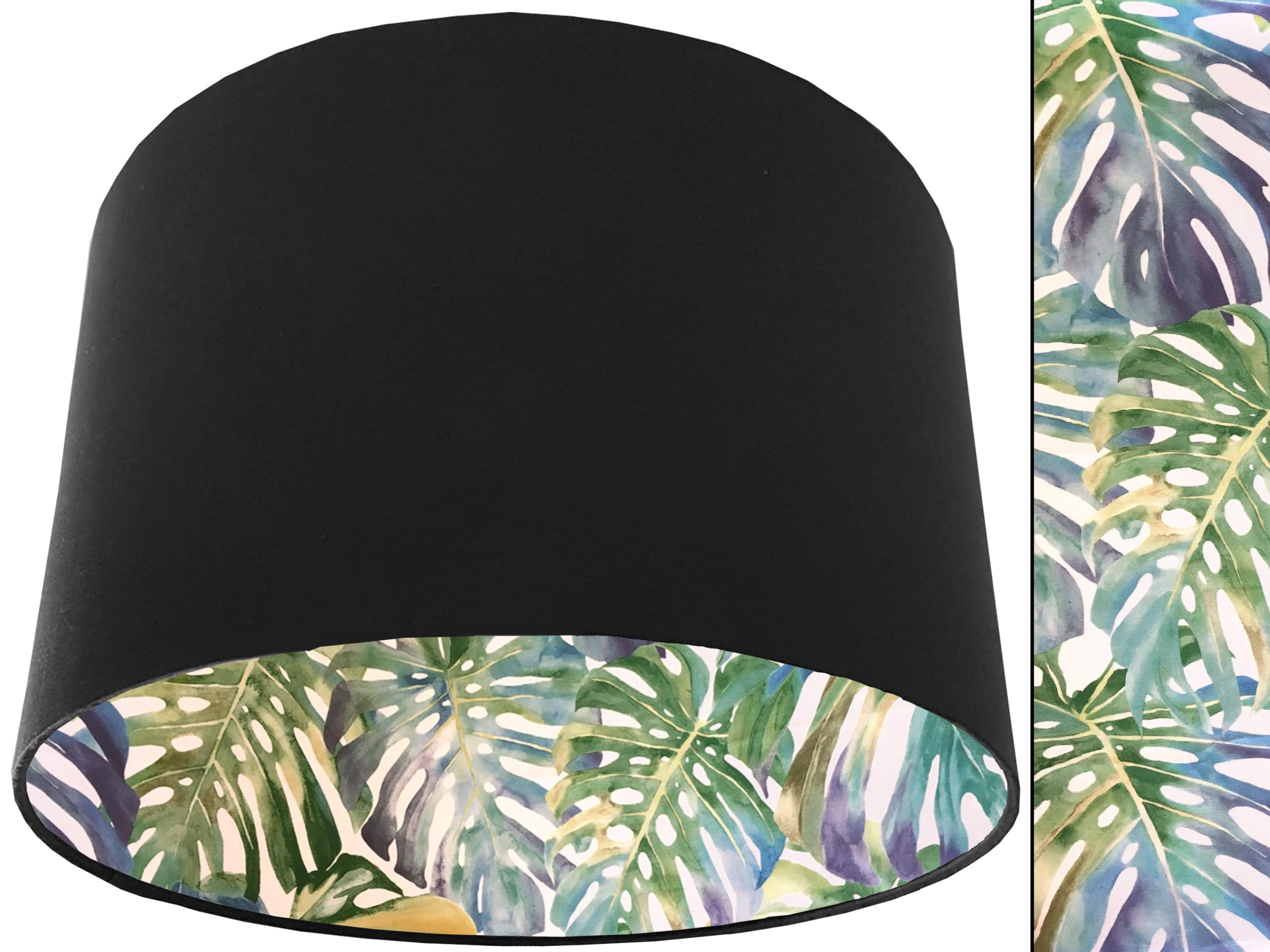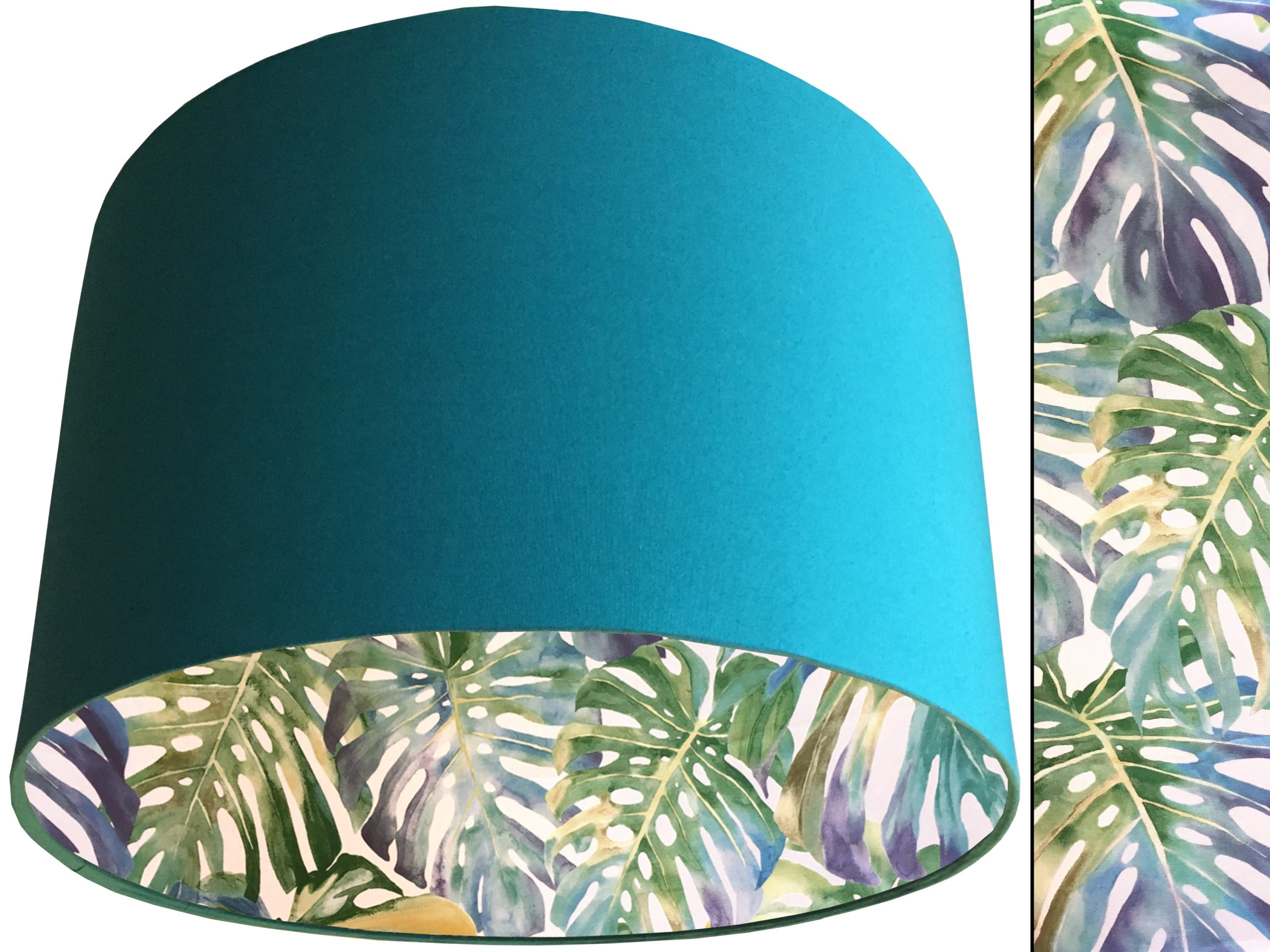 A beautiful mixture of palm leaves make this green palm leaf lampshade a stylish addition to your home interior. Our lampshades are carefully lined with a tropical leaf design feature pale green & blue coloured leaves which you can pair with an outer cotton colour of your choosing, giving this green palm leaf lampshade an extra burst of colour and style.