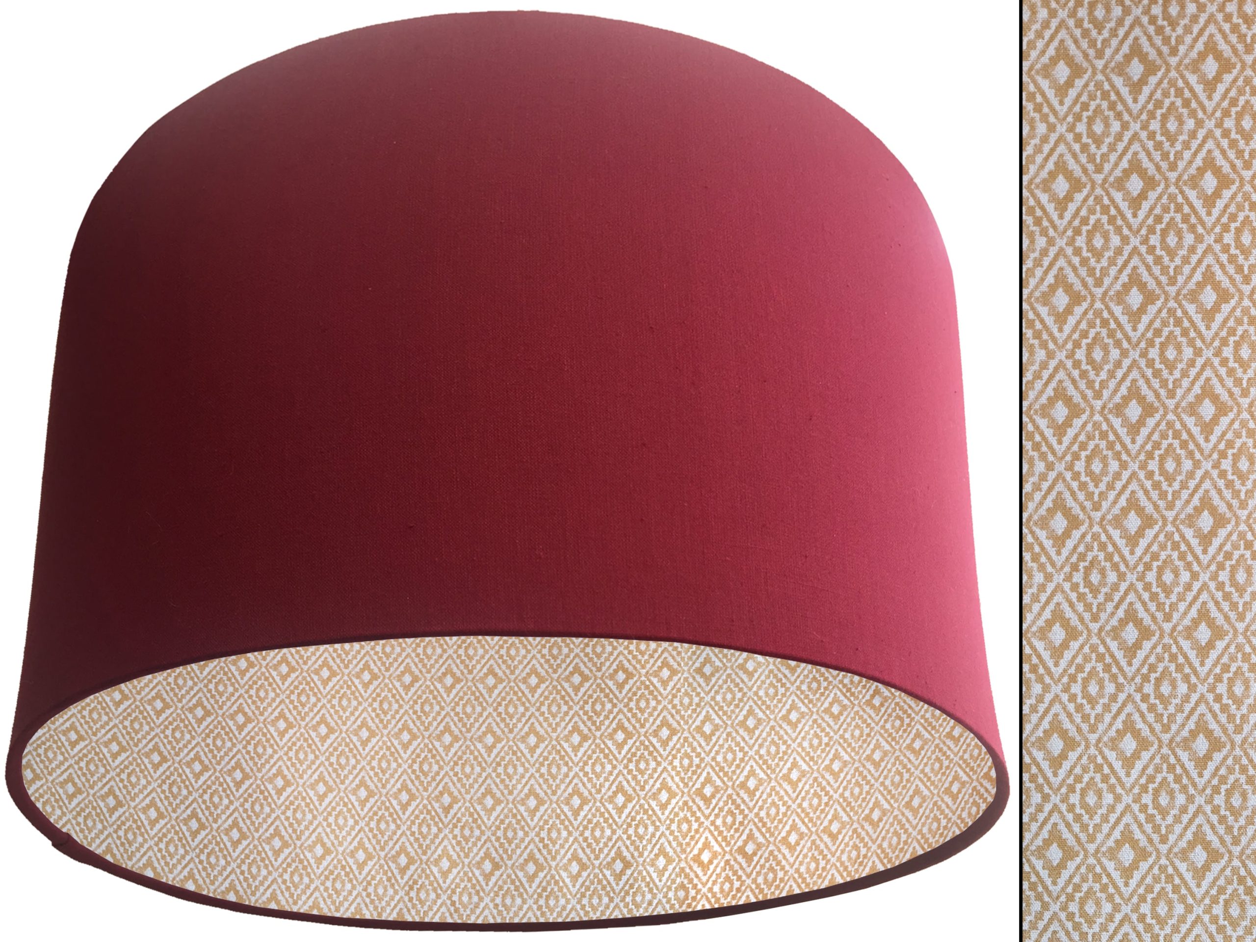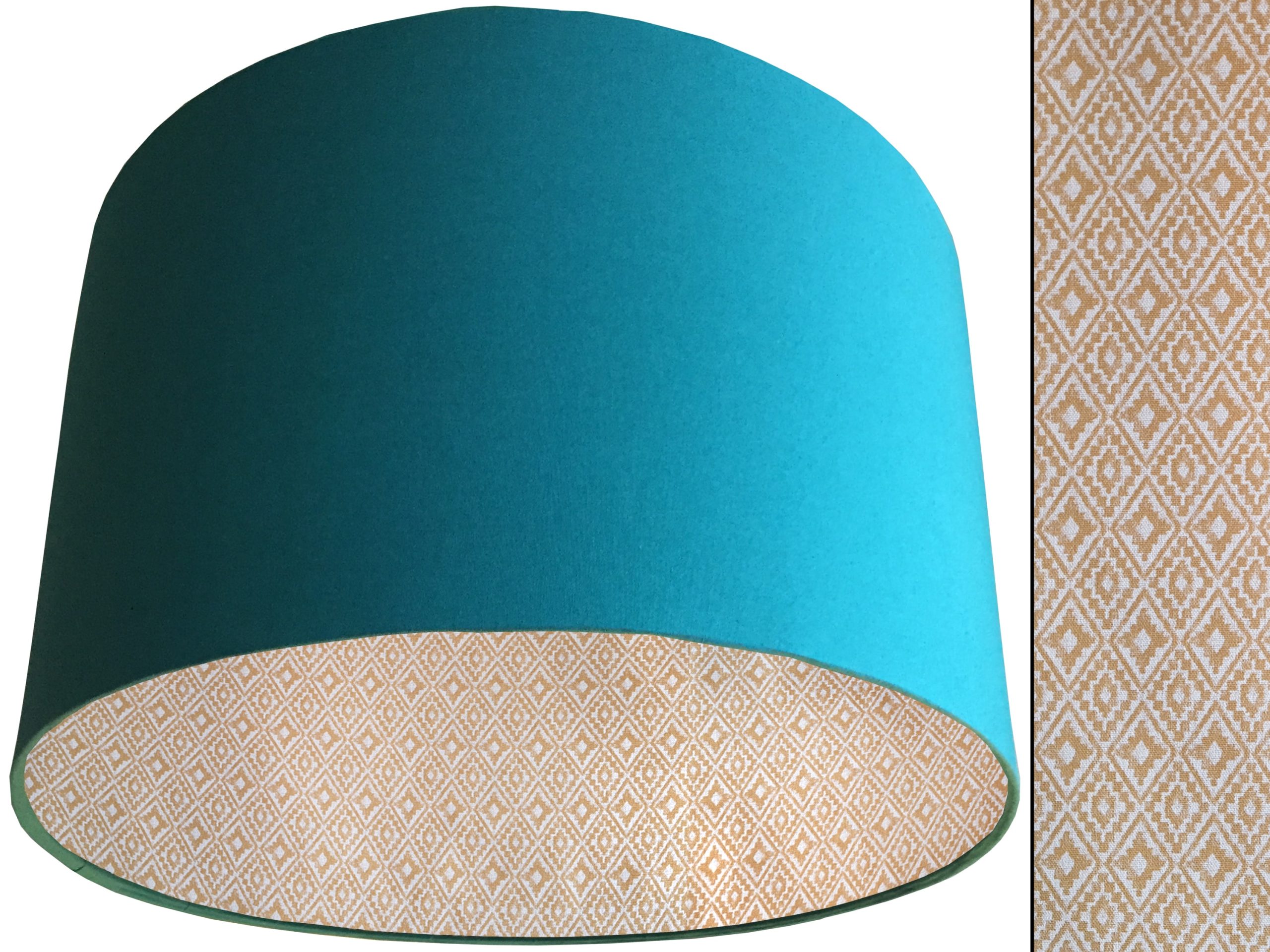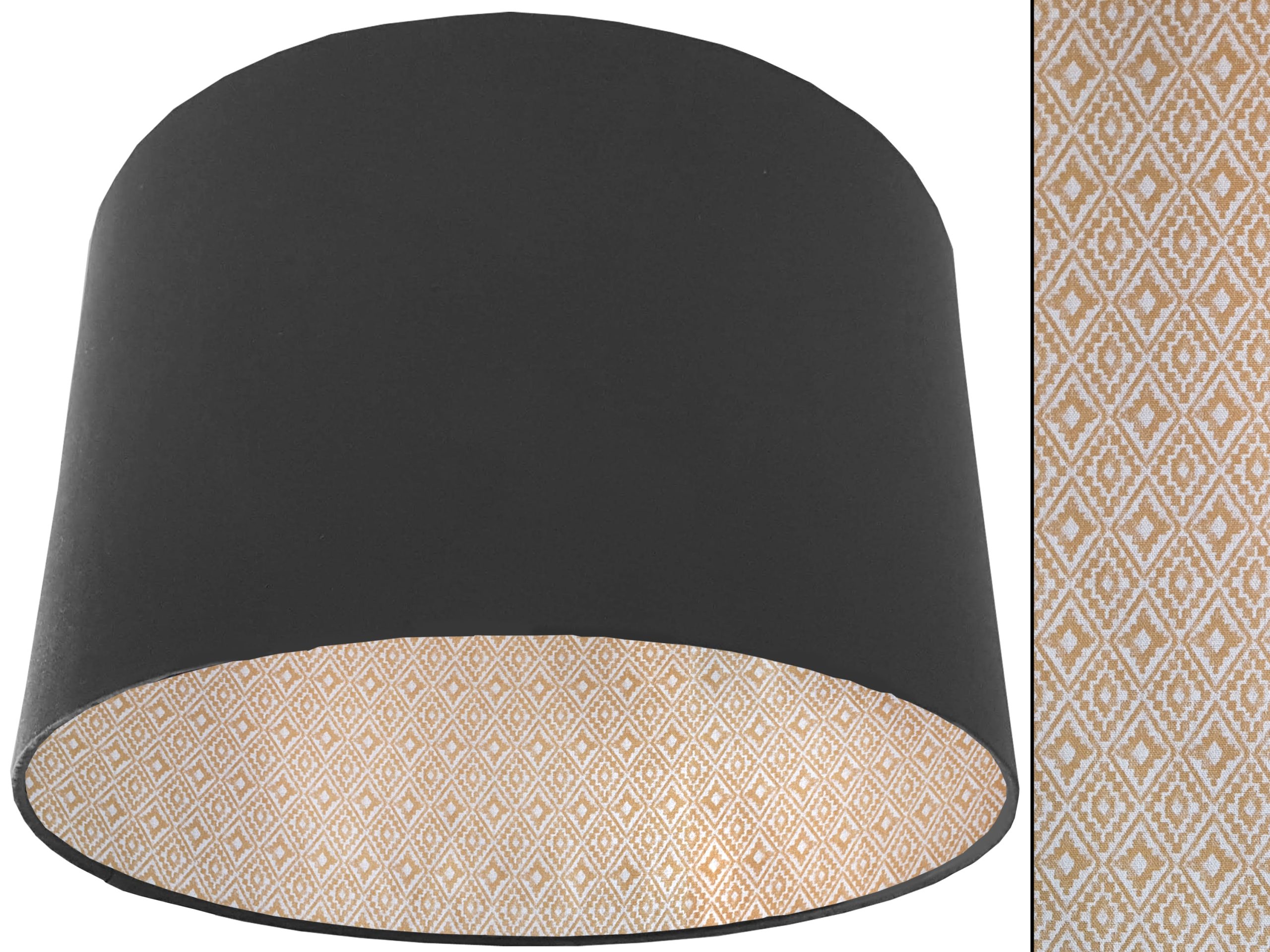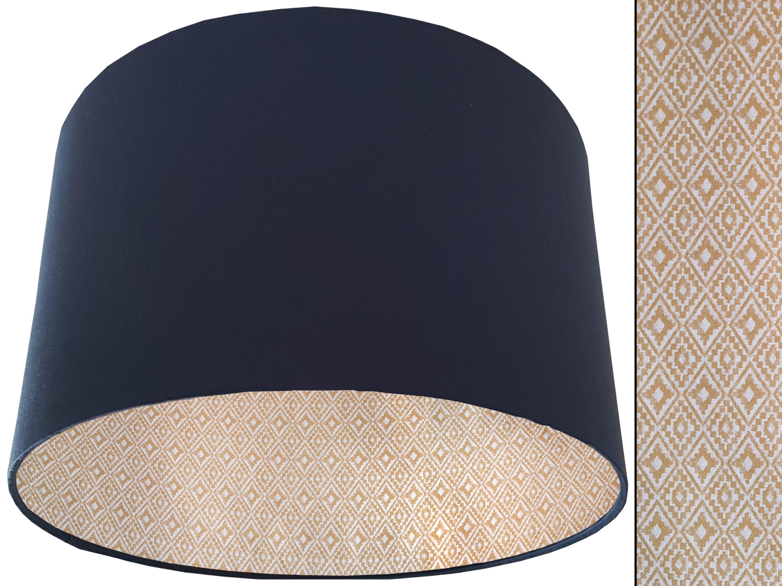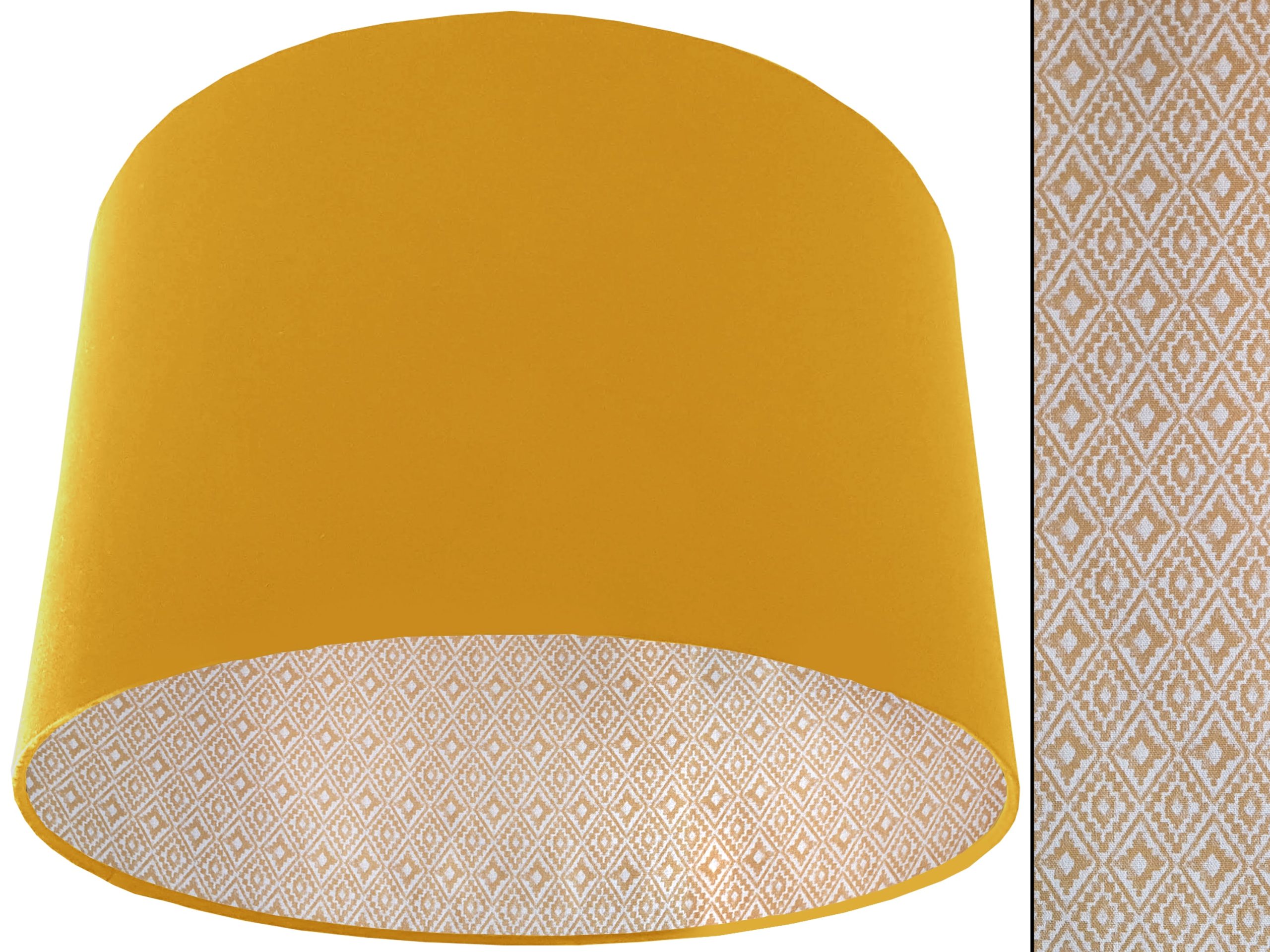 A modern geometric fabric makes this Navajo yellow lampshade a vibrant addition to any home interiors. Our lampshades are lined beautifully with a Native American inspired design featuring stylised diamonds in an on-trend mustard yellow colour. You can choose from a selection of outer cotton colour, giving this Navajo yellow lampshade an extra splash of colour and style.