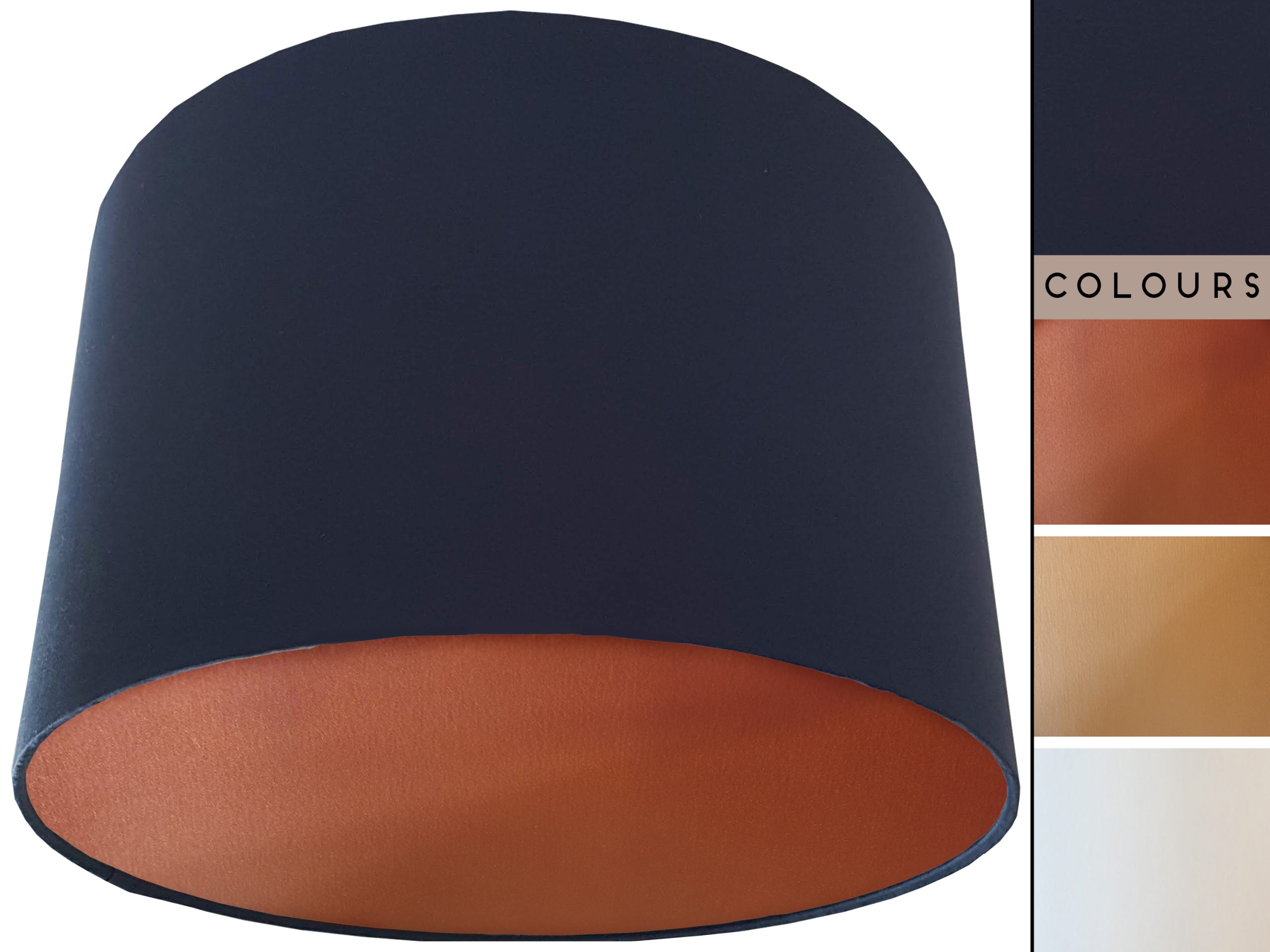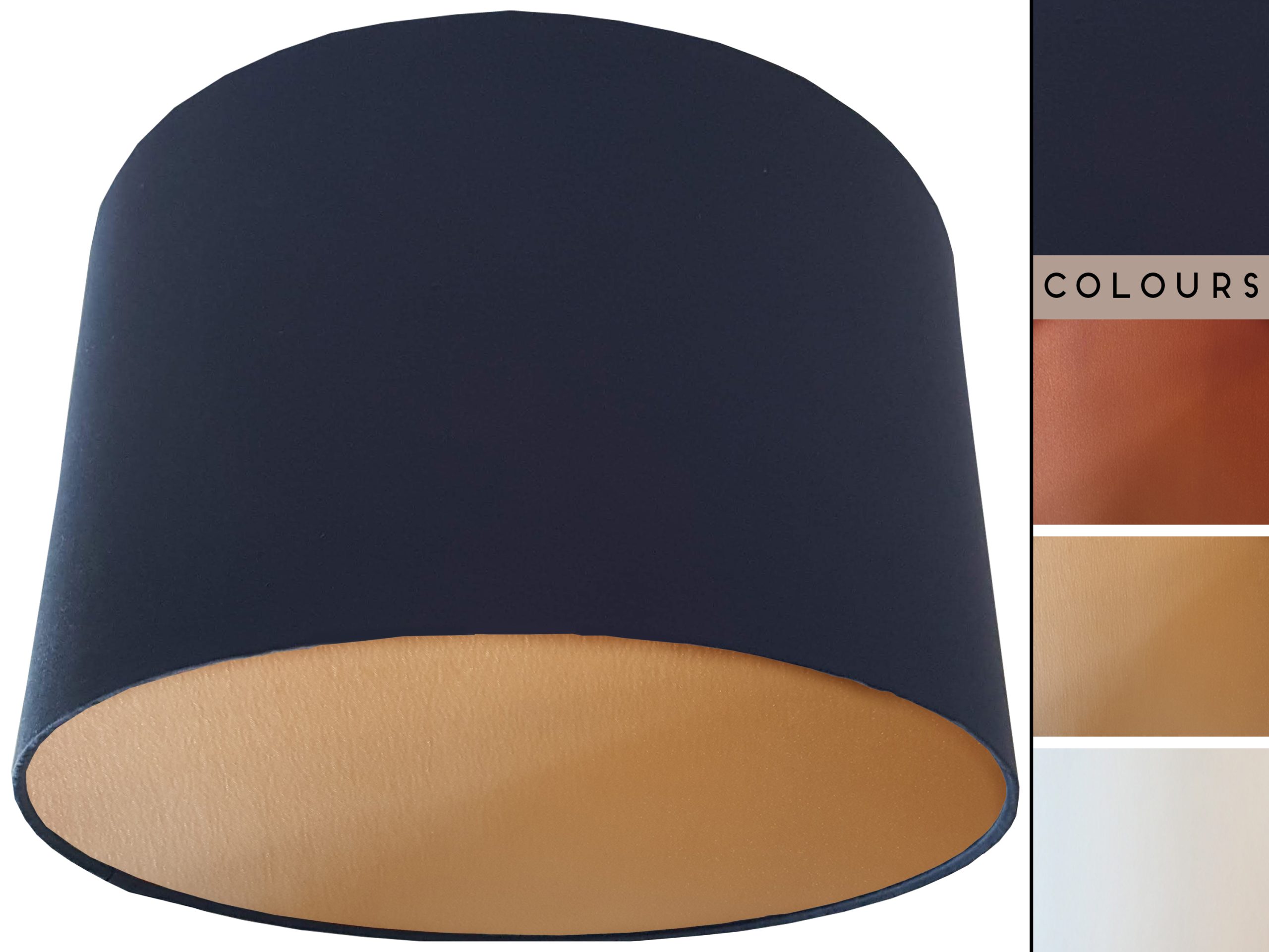 Blue lampshade with shimmer fabric lining, perfect for creating a subtle yet stylish look into any room. The outer fabric is a plain royal blue cotton, and can be paired with either a plain white PVC lining or a gorgeous shimmer fabric which adds an extra splash of colour to the shade. Perfect as a ceiling light shade or table lamp shade in your home.