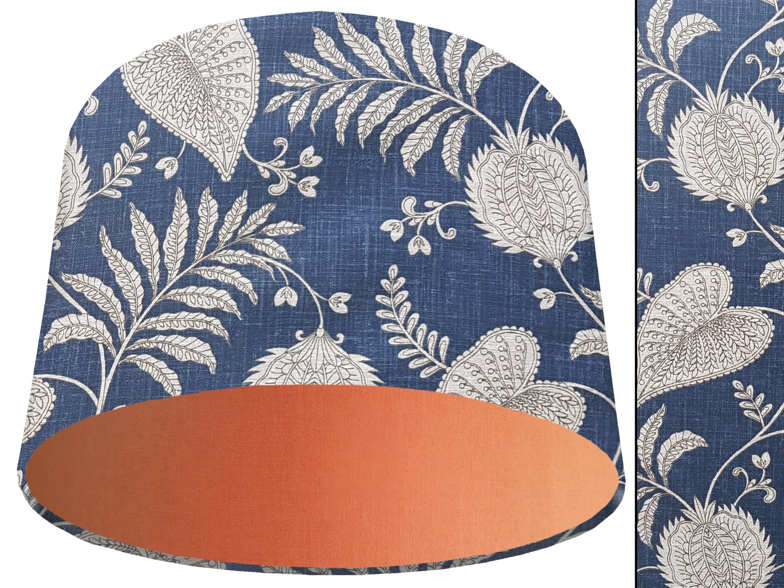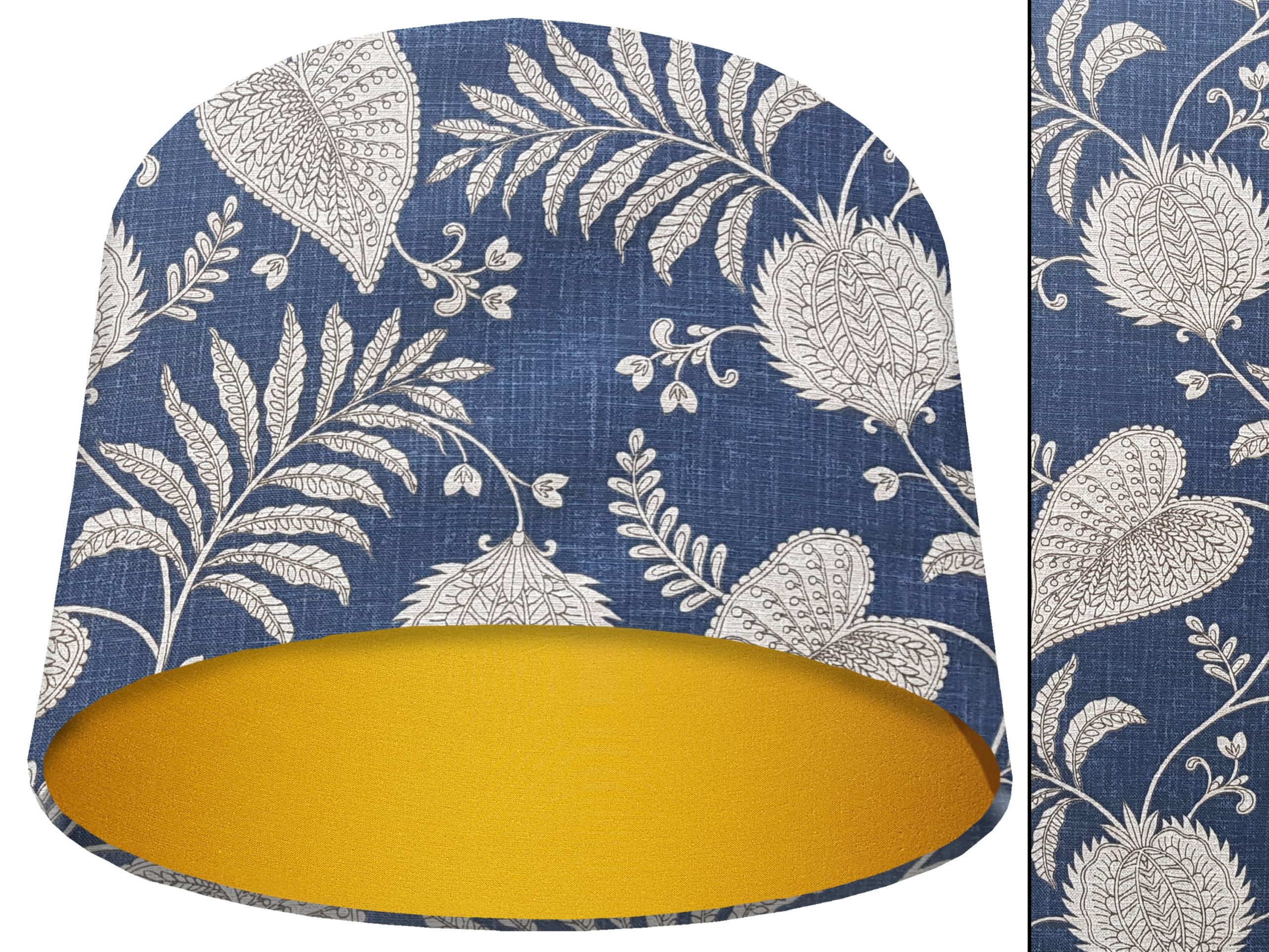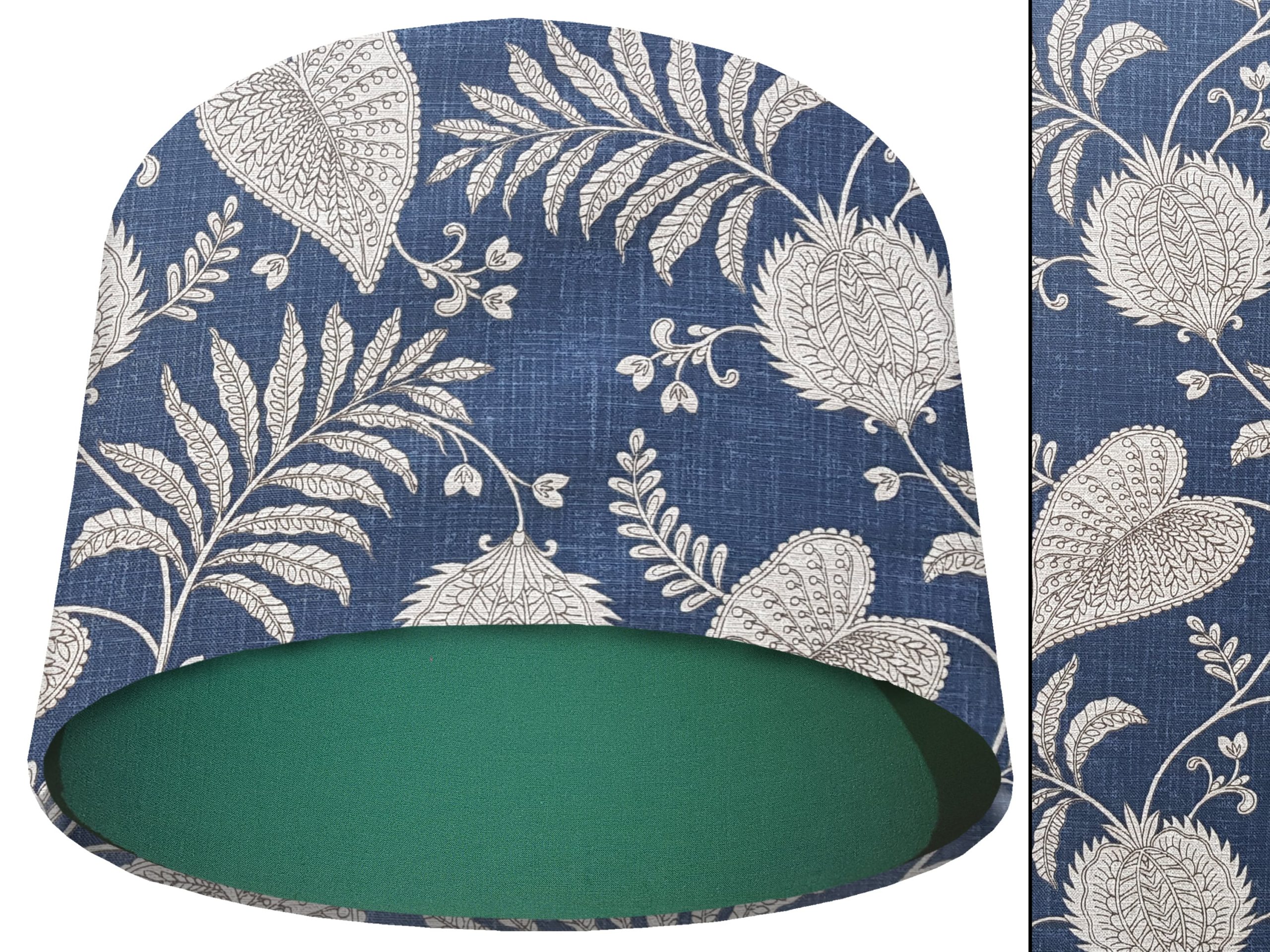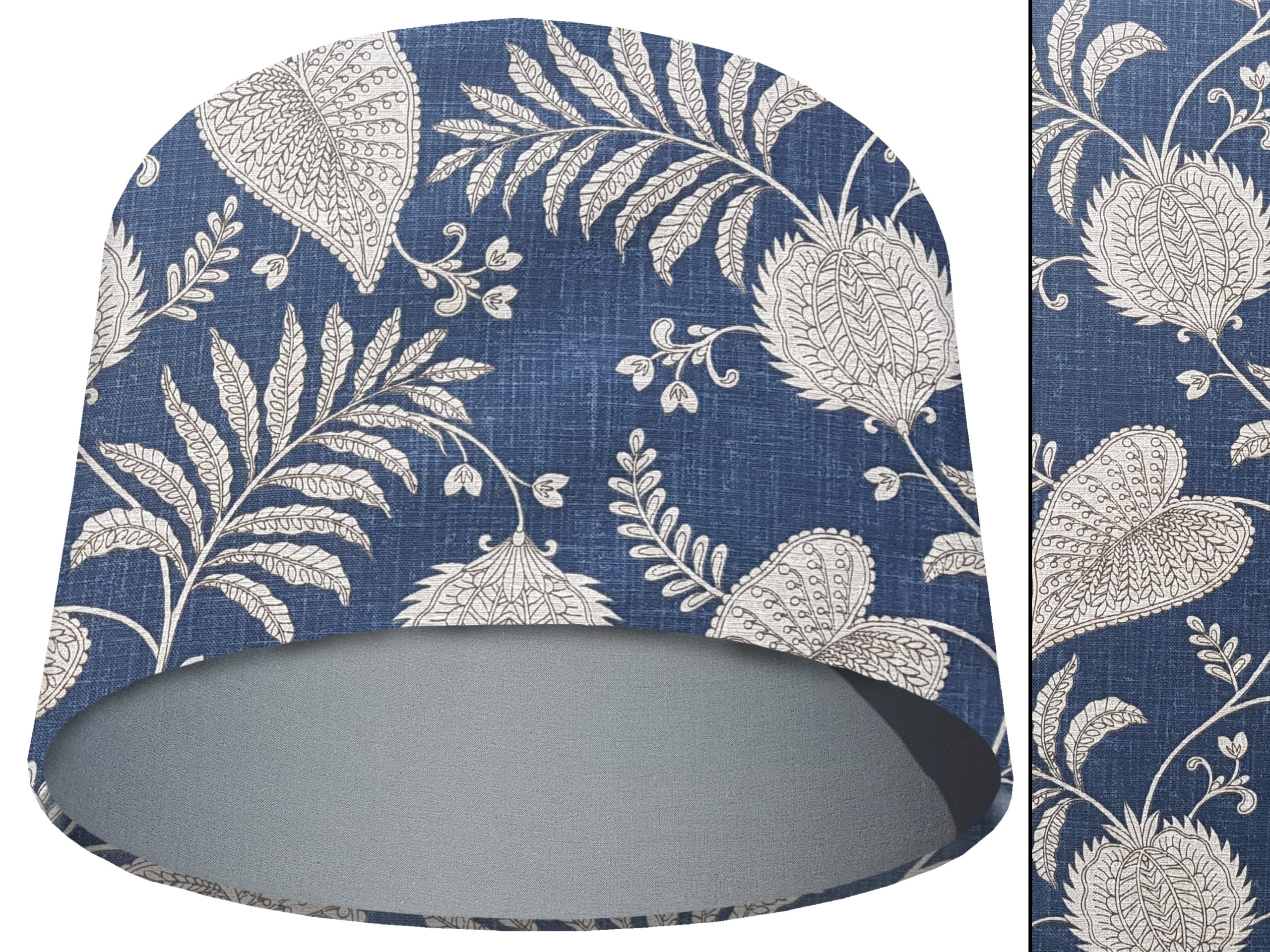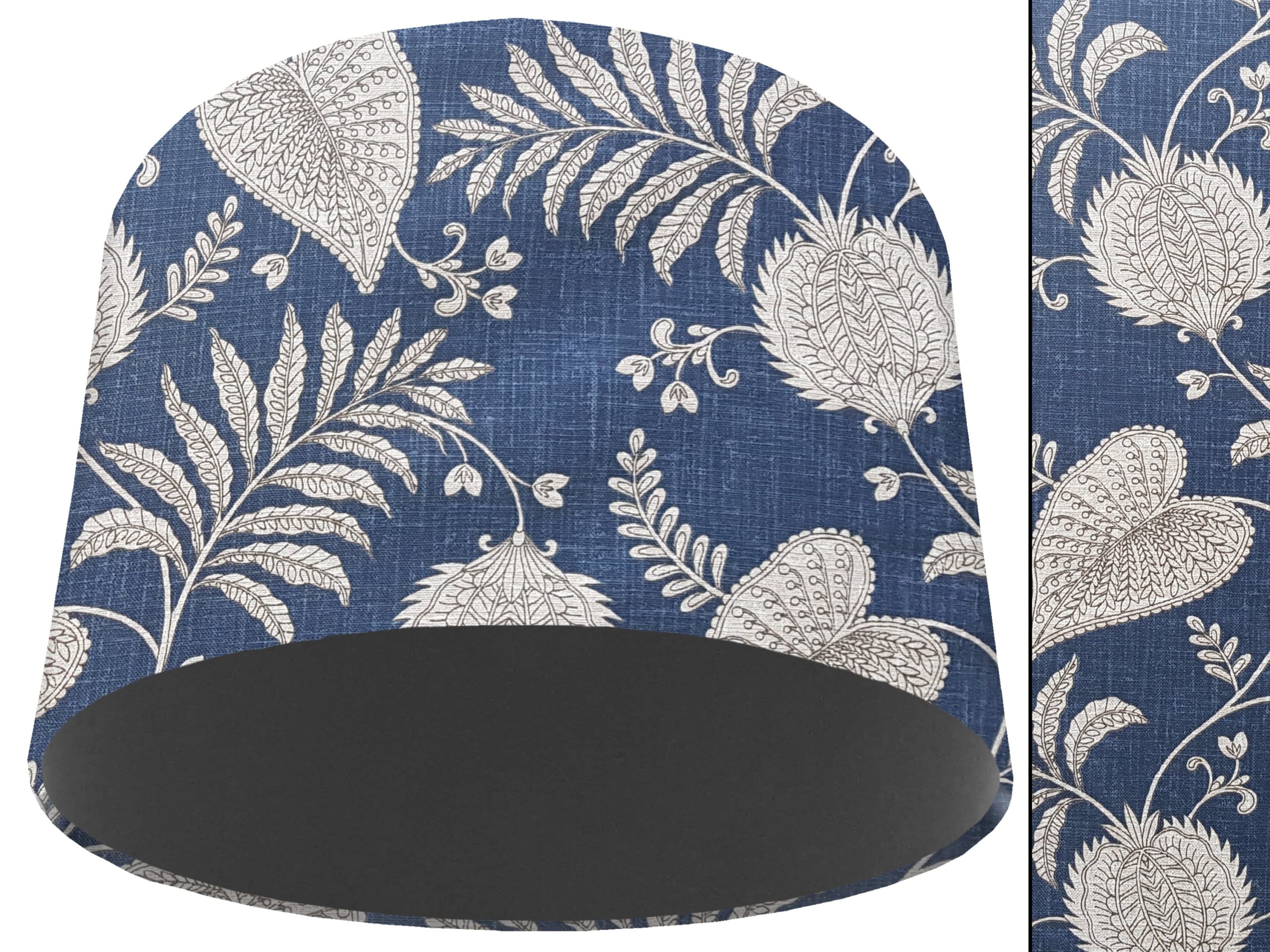 An eye-catching contemporary botanical print makes this paisley blue light shade a stylish addition to your colourful home interior. Our light shades feature a patterned exterior of white leaves & flowers with dark grey detailing on a deep blue background. Paired with a solid cotton colour lining of your choosing for this paisley blue light shade creates a bold look which is certain to become a stylish focal point in any room.