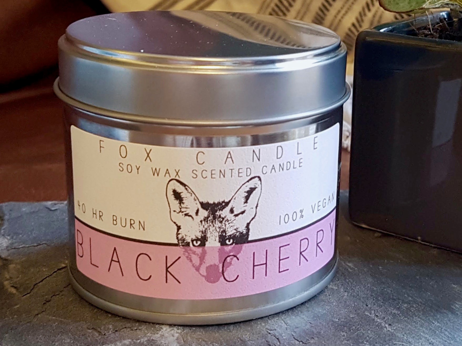Transform the feel of your room into a luscious summer’s day with our Black Cherry scented soy wax candle. The candle was made by blending the scent of plump cherries with a selection of other juicy berries with just a hint of almond, which produces a lovely sweet smell. All of our scented candles are housed in a silver metal tin which gives them a professional & eye-catching look. They are suitable as gifts or just for enjoying yourself.